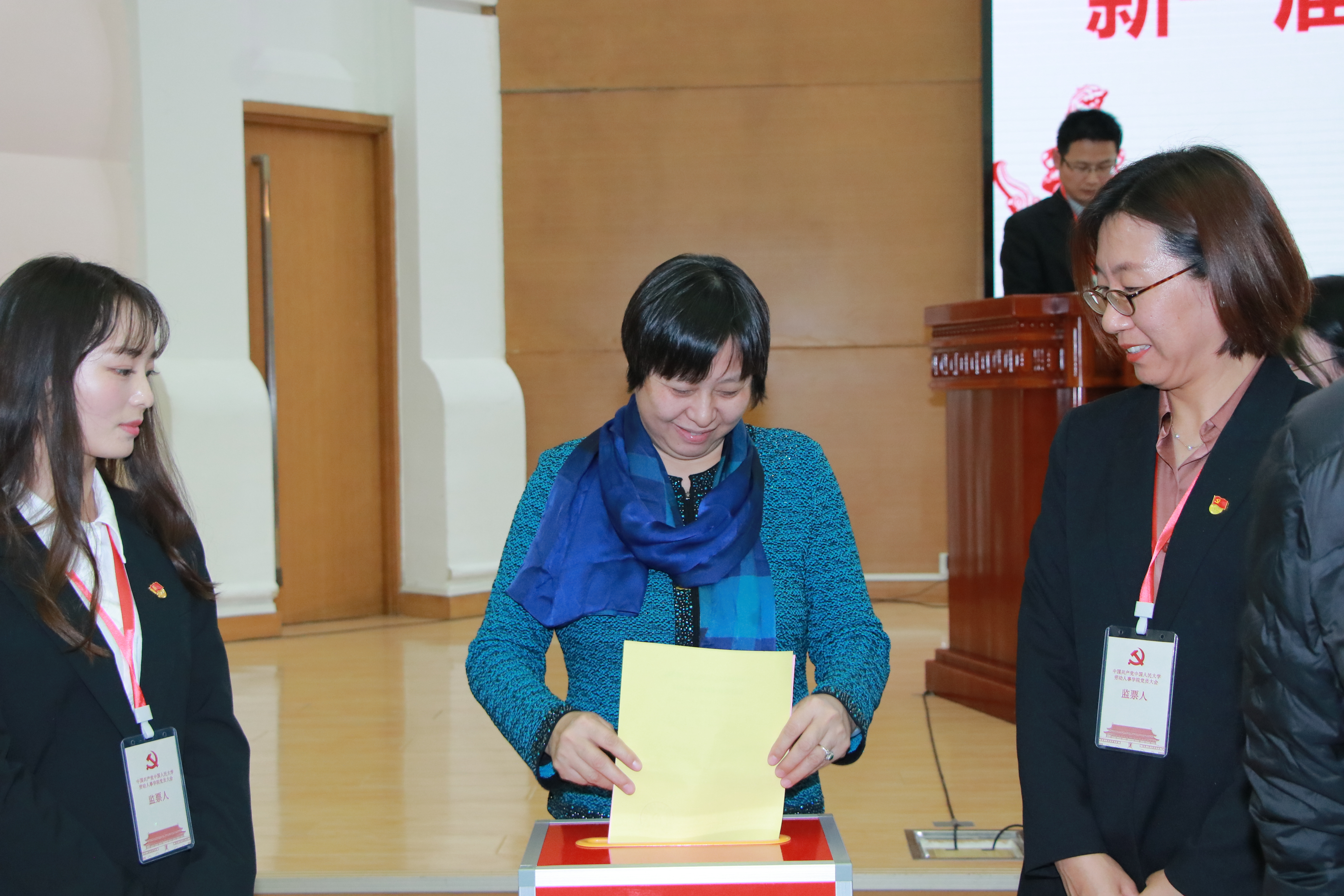 大会按照规定采取无记名直接差额选举办法。按照流程清点人数、分发选票、作废多余选票和宣读填写选票注意事项,各位党员代表填写选票。