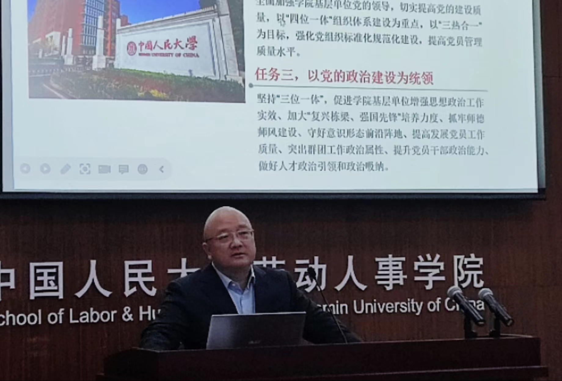 劳动关系系党支部书记涂永前带领大家学习公司基层党建攻坚年专项行动的“十个以”要求,并结合公司建设、人才培养、专业发展进行了详细介绍,探索“以师生党员联学共建推动专业团队建设”的新模式。他强调,要以党的政治建设为统领,以研制世界一流人才培养、一流团队建设、一流公司发展和一流人才队伍建设规划为牵引,以构建自主知识体系为目标,准确把握“中国特色”和“世界一流”的辩证关系,大力推进有组织科研,健全学术治理体系,同时对标人民大学的战略部署,以更高标准制定完善公司劳动关系学科的高质量发展规划。