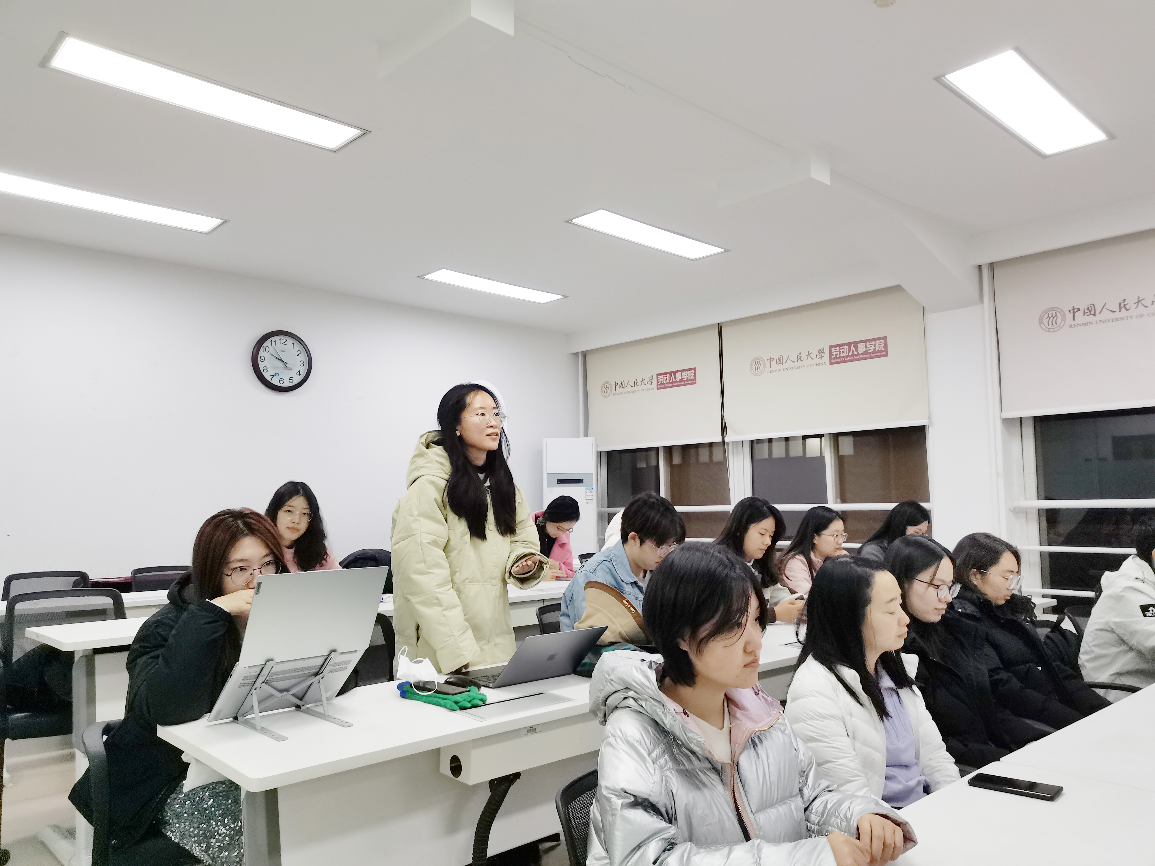 2022级硕士劳动关系班党支部书记徐歆煜结合自己的实践经验,分享了浙江省金华市工会作为一个服务型工会做法。她谈到,该工会不仅保持着对劳动者的基本关怀,还开展了一系列如百万职工技能提升培训工程、心理驿站、技能提升工作坊、优秀职工展示等教育培训服务活动,将工会打造成职工家园形式,与时俱进高质量提供时代所需要的工会创新工作服务。