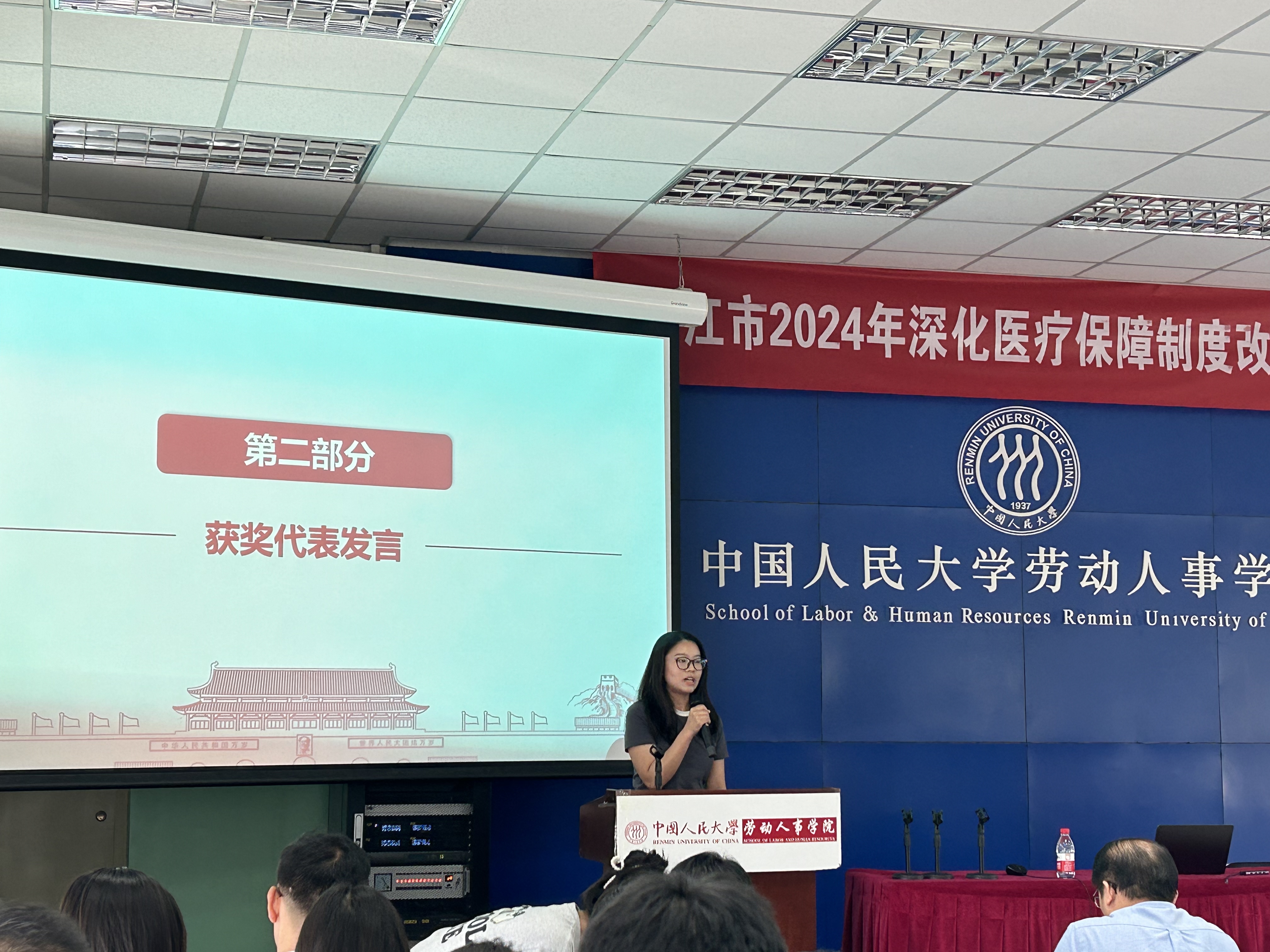 “优秀党务工作者(党支部书记)”代表、2022级硕士生王欣茹在发言中总结了支部工作的三项强化措施,一是党建培训和优化支委会工作机制,二是不断提升党员队伍质量,三是重视主题党日创新与学习教育,发言结尾她表达了对公司培养的感激之情及对支部未来的美好祝愿。