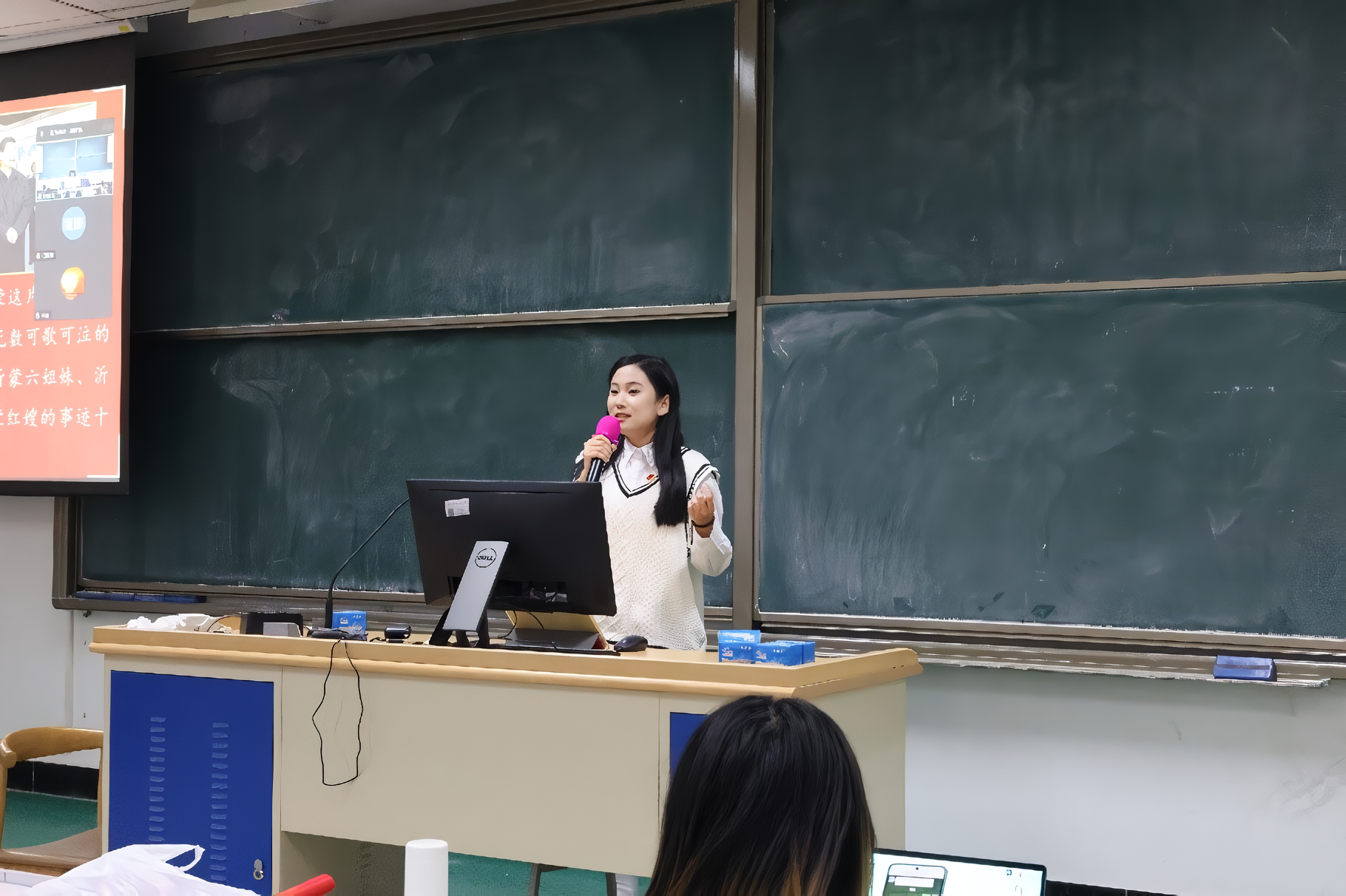 沂蒙精神百校行志愿者、中国矿业大学硕士研究生徐宇婷同志通过沂蒙红嫂、沂蒙母亲及沂蒙六姐妹的三组故事生动且形象地为我们讲述了沂蒙精神的内涵和现实意义。她讲到,2013年习近平总书记视察临沂时,曾说“沂蒙精神与延安精神、井冈山精神、西柏坡精神一样,是党和国家的宝贵精神财富”。历史和现实已经清楚地告诉我们,无论是在艰苦的革命战争年代,还是在社会主义现代化建设时期,都必须始终以广大人民群众的根本利益作为行为选择的出发点和归宿。我们当代青年应当饮水思源,不忘初心,自觉弘扬沂蒙精神,深入践行群众路线,让植根于共产党人身上“红色基因”焕发出新的生命力。