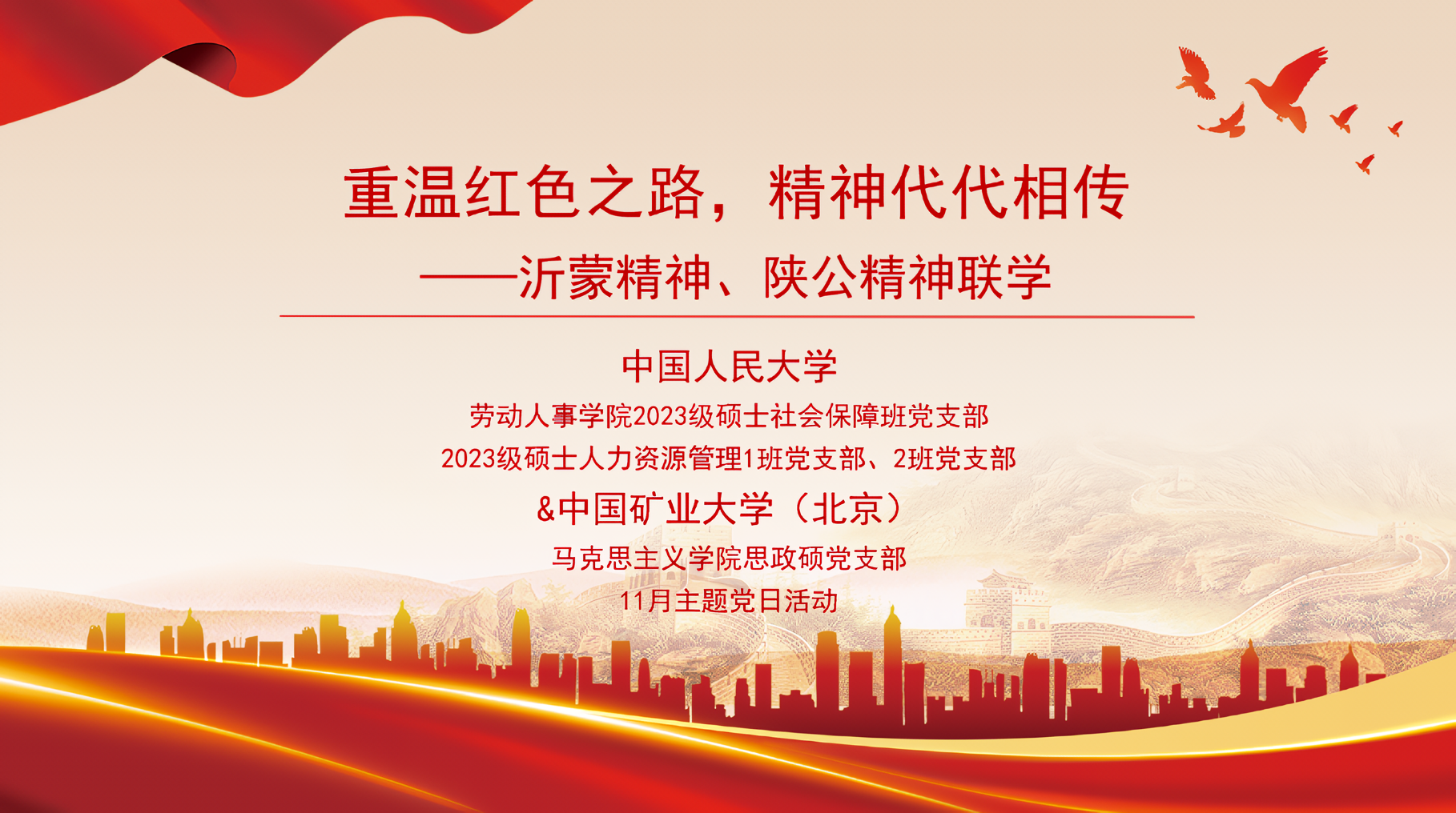 2023年11月25日下午,太阳成tyc122cc集团2023级硕士社会保障班、人力资源管理1班及2班党支部与中国矿业大学马克思主义公司思政硕士党支部,于公教一楼1406室联合开展“重温红色之路,精神代代相传——沂蒙精神、陕公精神联学”主题党日活动。本次活动邀请太阳成tyc122cc集团马克思主义公司博士生宣讲团周鼎、太阳成tyc122cc集团2021级硕士毕业生任锡廉以及农业与农村发展公司2020级硕士毕业生王纲做分享,四个支部的党员同志共同参与。