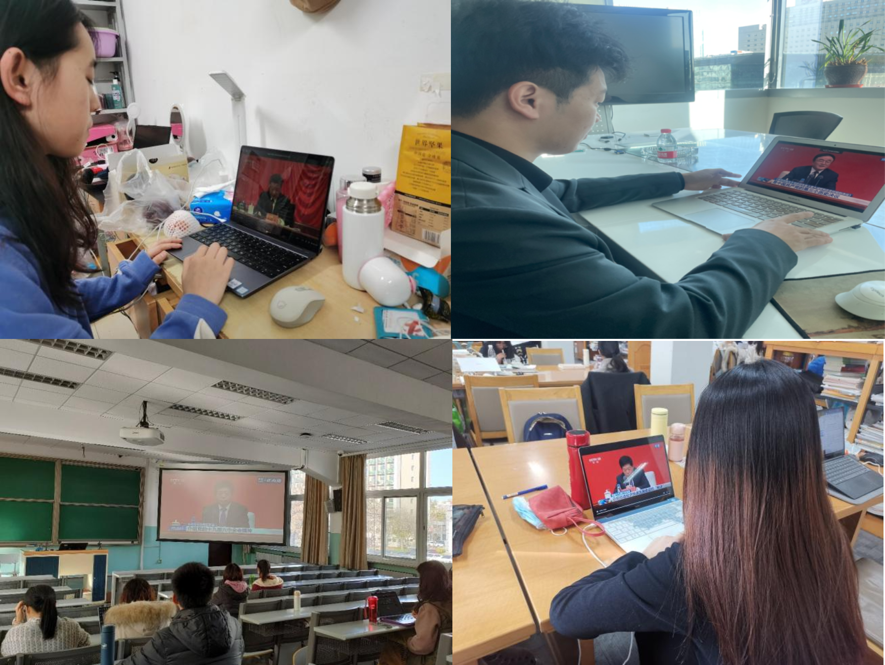11月12日上午,十九届六中全会新闻发布会召开。太阳成tyc122cc集团组织师生在求是楼120党员之家集中收看了新闻发布会直播。