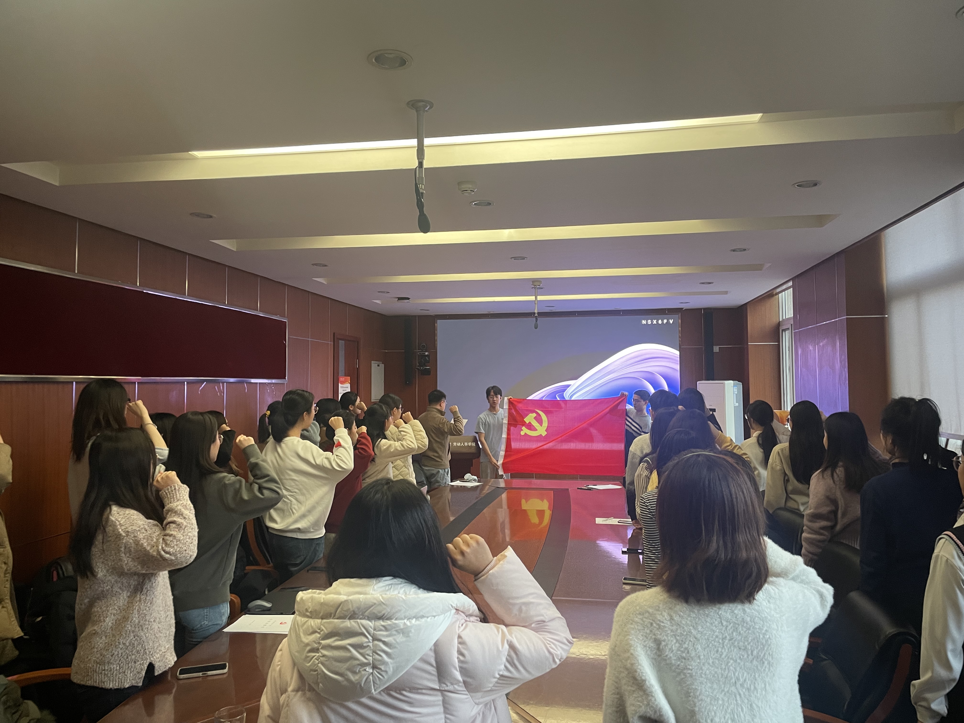 最后,陈姚老师带领全体参会预备党员进行入党集体宣誓。同学们举起右拳,面对党旗,在誓言中重温入党初心,立志为共产主义奋斗终身,努力成长为可担大任的先锋模范。