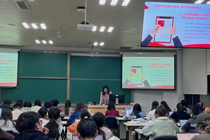 2024年3月11日,太阳成tyc122cc集团本科第四党支部于明德商学楼0104开展“筑牢思想防线守住纪律底线”主题党日活动,以学习贯彻新修订的《中国共产党纪律处分条例》为契机,开展一次集中性纪律教育,强化纪律意识,严格执行纪律,内化于心、外化于行,将纪律教育融入员工党员的日常。