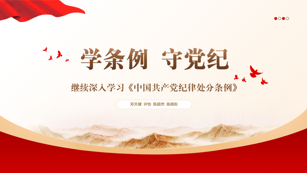 接着,许怡同志与邓天健同志带领支部成员对《中国共产党纪律处分条例》的内容进行了系统性梳理与解读。通过系统性集中学习,支部成员明晰了《中国共产党纪律处分条例》总则、分则与附则的结构框架与具体内容,掌握了政治纪律、组织纪律、廉洁纪律、群众纪律、工作纪律与生活纪律的重要地位与本质区别,了解了《中国共产党纪律处分条例》的解释机关与溯及力,领悟了《中国共产党纪律处分条例》的特征内涵与修订意义。