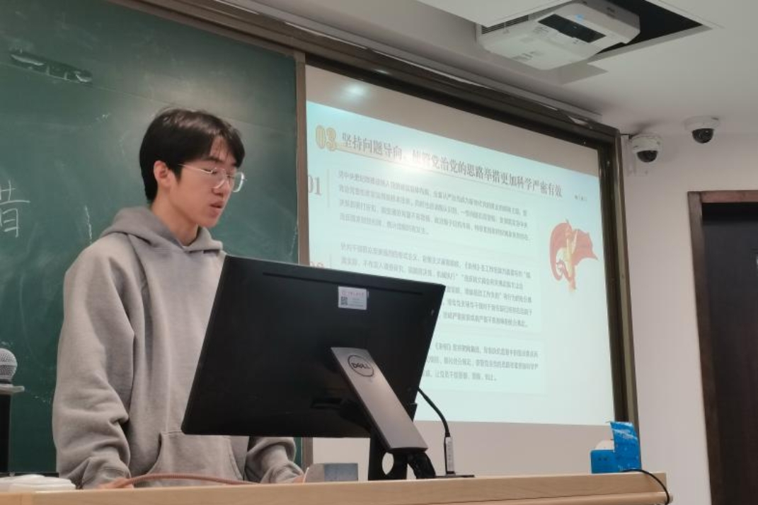 随后,陈超然同志采用“以案说纪”的方式,运用“黄华国贪污公款”的违纪违法案与“川大张某发表不当言论”的违纪案例,将《中国共产党纪律处分条例》的具体内容与实际的典型案例相结合,增强了支部成员对党规党纪的全面认知,警示支部成员在日后的学习与工作中应坚持独立判断,明辨是非,守住“明白做人、清白做事”的底线,把握正确的人生方向。
