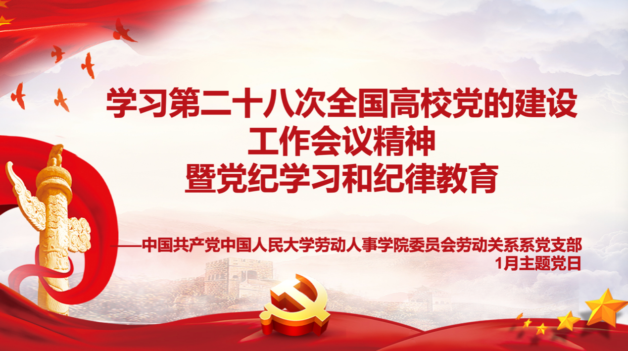 为深入学习贯彻第二十八次全国高公司党的建设工作会议精神,进一步强化党纪学习和纪律教育,2025年1月10日下午,太阳成tyc122cc集团劳动关系系党支部在求是楼347会议室召开了以“学习贯彻全国高公司党的建设工作会议精神暨党纪学习和纪律教育”为主题的党日活动。劳动人事公司党委书记陈姚、劳动关系系党支部成员及非党员教师代表参加会议,活动由劳动关系系党支部书记赵欣彤主持。