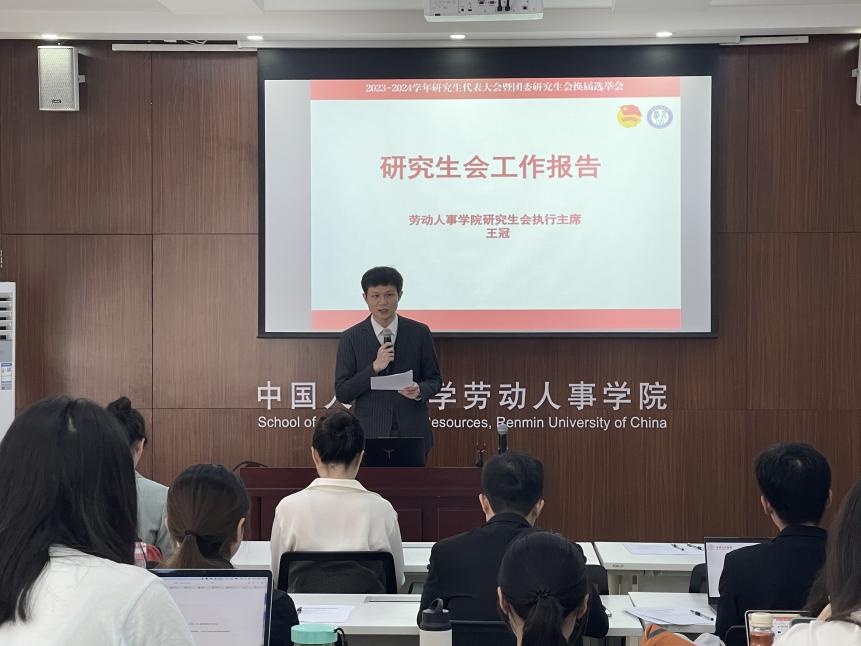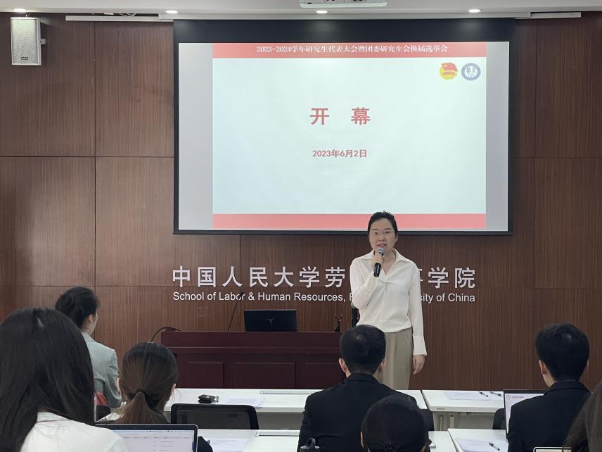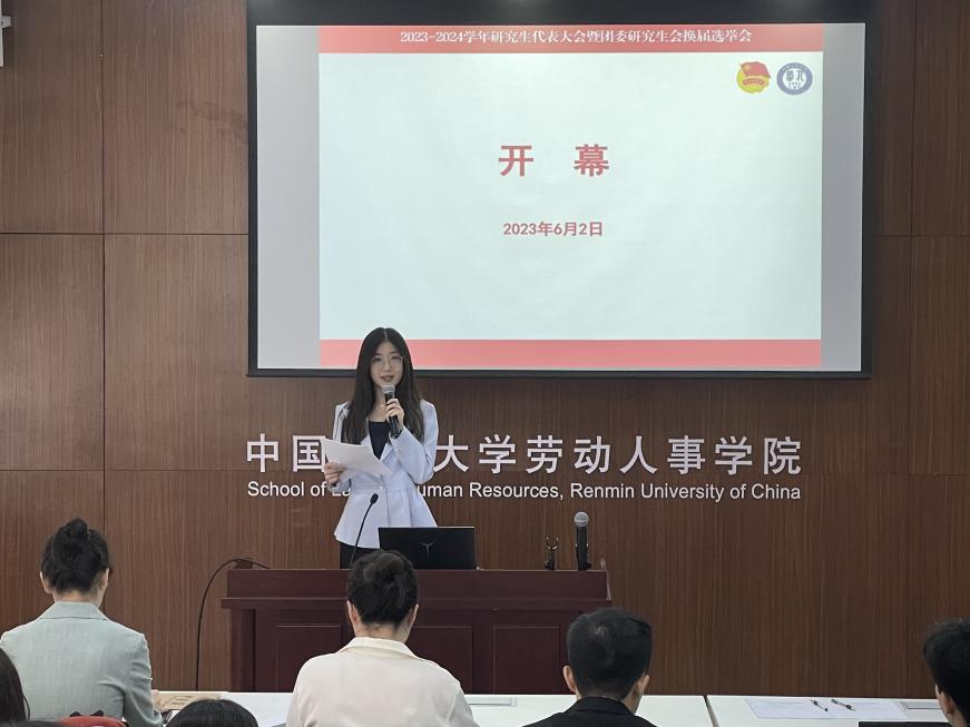 团委研究生会员工骨干候选人进行竞选演讲。22级人力资源管理专业硕士生王梓鉴,22级人力资源管理专业硕士生边辰,22级劳动关系专业硕士生李昊泽,22级劳动关系专业硕士生杨茗之,22级社会保障专业硕士生张梓静,22级社会保障专业硕士生施源,22级人力资源管理专业硕士生徐浩,22级社会保障专业博士生曾勉,共8位候选人依次进行个人述职报告,分别介绍了他们过去一个学年在研究生会的工作情况以及对未来工作的规划。