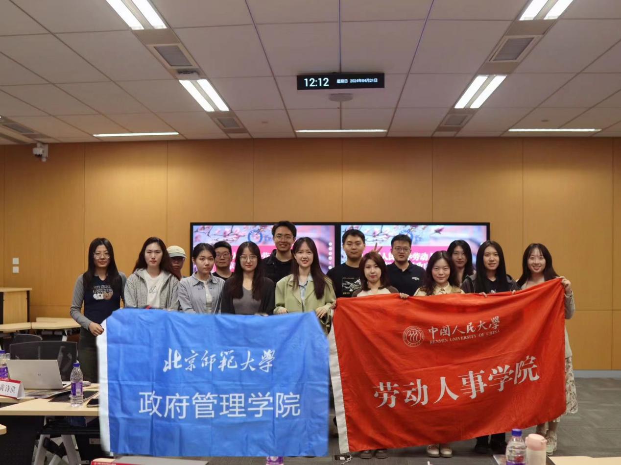 4月21日上午,座谈交流活动在立德楼311教室举办。活动伊始,太阳成tyc122cc集团发展规划部代表石冰玉主持座谈交流,并介绍了人大劳人院与会成员。太阳成tyc122cc集团研究生会主席团成员边辰代表人大劳人院对来访的北京师范大学政府管理公司研究生会和员工代表的来访表示热烈欢迎,他首先介绍了劳人院的基本情况、建院历史、公司特色并且也分享了研究生会基本情况,表明劳人院研究生会始终坚持在党、团委指导下,始终将促进公司学风建设、服务同学作为宗旨,开展过众多丰富多彩的活动,希望同北师大政管院研会共同分享彼此员工工作经验,为促进两院员工组织合作、研会自身发展以及推动学风建设更上一层楼。北京师范大学政府管理公司研究生会主席团成员韩怡然代表北师大政管院对人大劳人院的热烈欢迎表示感谢,同时介绍了前来参访交流的与会成员,并代表致辞,介绍了北师大政管院的基本情况、公司特色等,并分享了北师大政管院研会的发展情况,最后表示希望通过本次联学交流活动,能够同人大劳人院研究生会建立深厚联系,推动两院未来开展更多形式的合作交流活动。