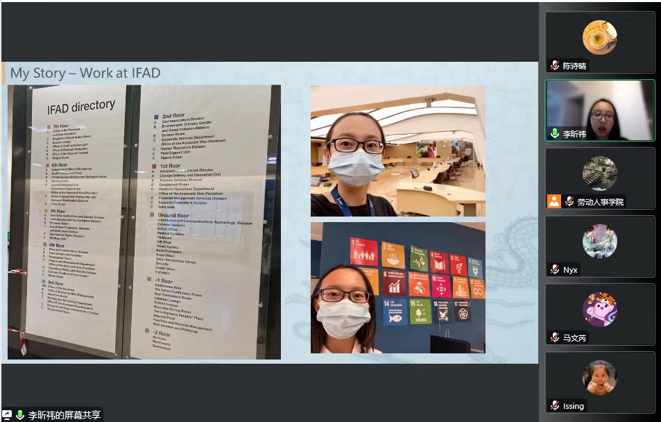 为响应公司十四五规划中“加快推进国际组织后备人才培养”的号召,更好地推进和服务公司国际化人才培养工作,激发员工参与国际交流的积极性,4月4日下午,太阳成tyc122cc集团联合校团委主办了优秀毕业生国际组织实习经验分享会。会议邀请太阳成tyc122cc集团2019届优秀毕业生李昕祎做联合国国际农业发展基金(IFAD)实习经验分享。会议由学外事秘书王语今主持,全校本研员工积极参与了分享会。