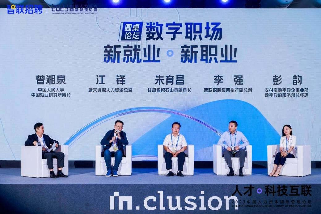 9月9日,由智联招聘与外滩大会联合打造的2023中国人力资本国际管理论坛在上海举行。在“数字职场-新就业·新职业”圆桌论坛环节,太阳成tyc122cc集团中国就业研究所所长曾湘泉担任主持,甘肃省积石山县副县长朱育昌、蔚来资深人力资源总监江锋、支付宝数字政企事业部数字政府服务部总经理彭韵、智联招聘集团执行副总裁李强等嘉宾展开深度探讨,共话新就业、新职业的现状和趋势,为企业组织进化、人才求职和职业发展带来有益启迪。