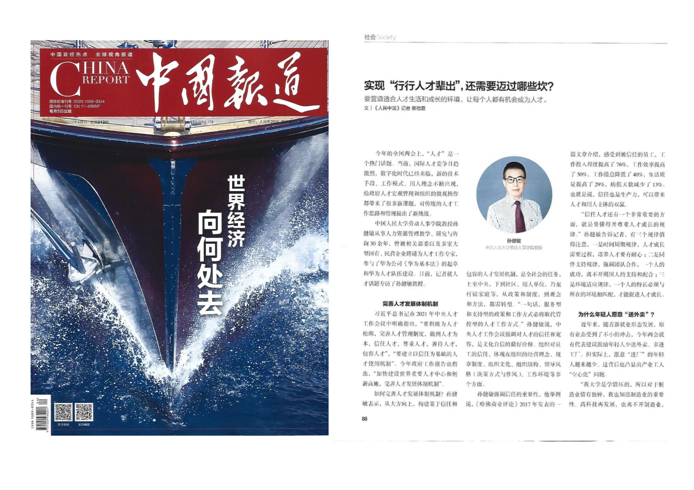 近日,公司孙健敏教授接受了《中国报道》杂志人民中国栏目记者的专访,就全国两会上的热门话题“人才”,畅谈了自己的认识和观点。