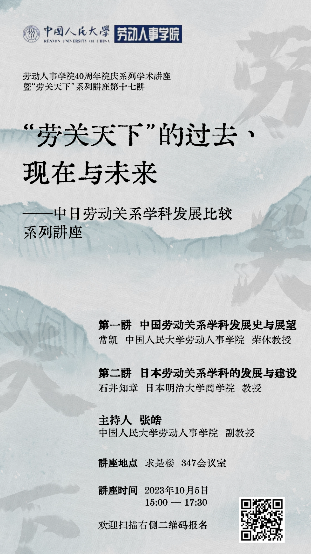 讲座题目:“劳关天下”的现在、过去与未来——中日劳动关系学科发展比较系列讲座