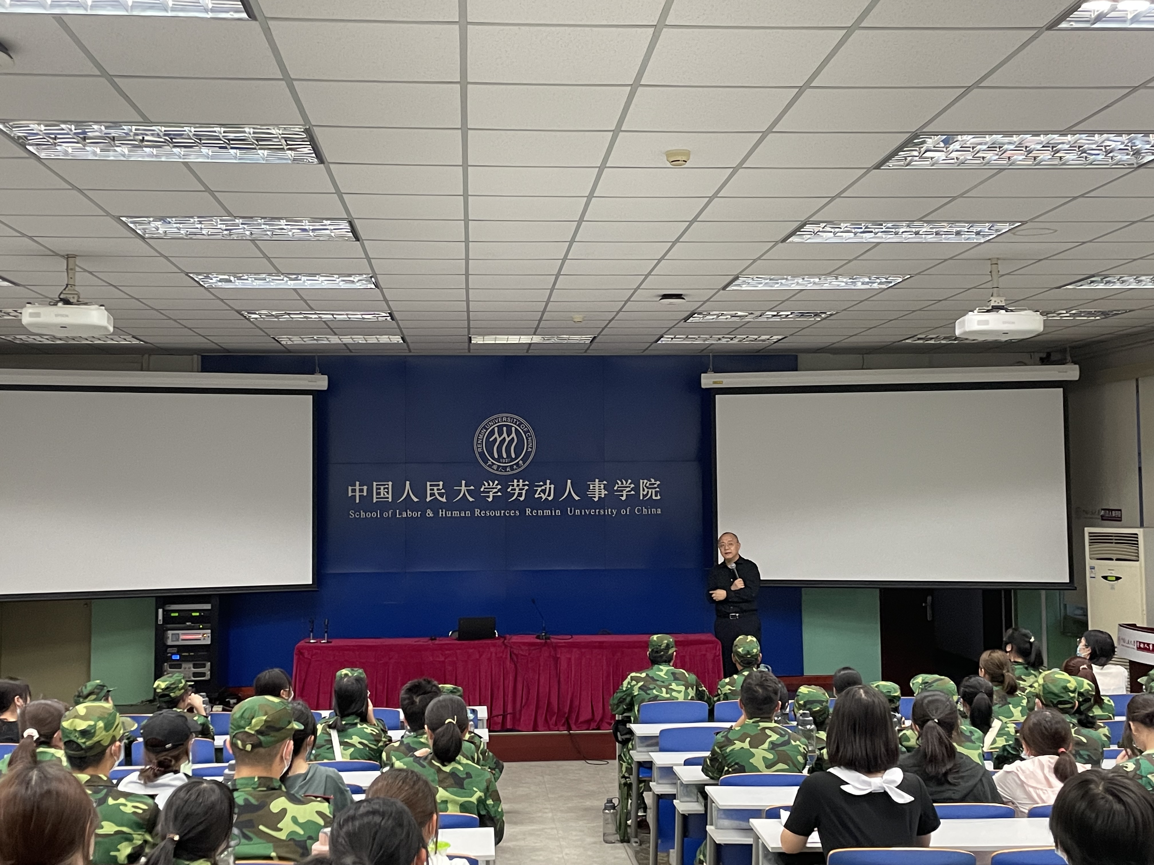 9月21日晚,劳动人事公司党委书记唐鑛到求是楼440报告厅看望2022级本科军训新生。他表示,公司老师们非常关注同学们军训的进展,希望同学们在军训中有所收获、有所成长。
