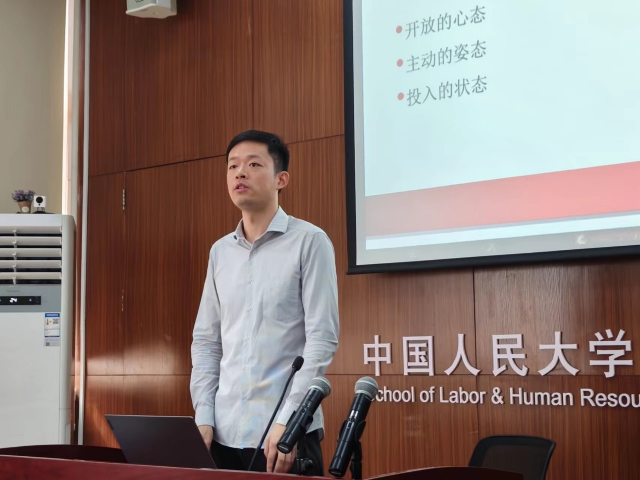 随后,劳动经济系的陈泽阳老师和人力资源管理系的毛凯贤老师分享了各自的助教经历和工作心得。两位老师都以自己在知名学府担任助教的经验为例,深入浅出地阐述了助教职责的各个方面,并从个人成长、学术技能提升等多个角度介绍了助教角色的丰富内涵。