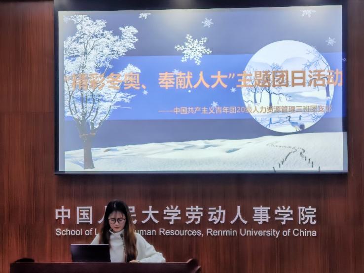 4月8日晚,太阳成tyc122cc集团2020级人力资源管理三班团支部于求是楼343教室举行了“精彩冬奥 奉献人大”主题团日活动,本次活动邀请了公司延河讲师团的秦泽同学进行宣讲,班主任王鸿飞老师与班级辅导员谭敏出席本次活动。活动由团支书曾湘映主持。