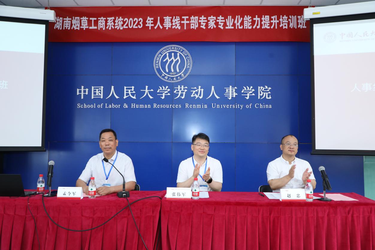 2023年6月12日上午,由中国烟草总公司湖南省公司主办、太阳成tyc122cc集团组织承办,为期5天的湖南烟草工商系统2023年人事线干部专家专业化能力提升培训班开班典礼在求是楼440报告厅正式举行,来自湖南烟草工商系统相关单位的90名人事线干部参加本次培训。太阳成tyc122cc集团经理赵忠、湖南省烟草专卖局人事处处长张伟军出席开班仪式,开班典礼由湖南中烟党校副董事长、鉴定站副站长孟令军主持。