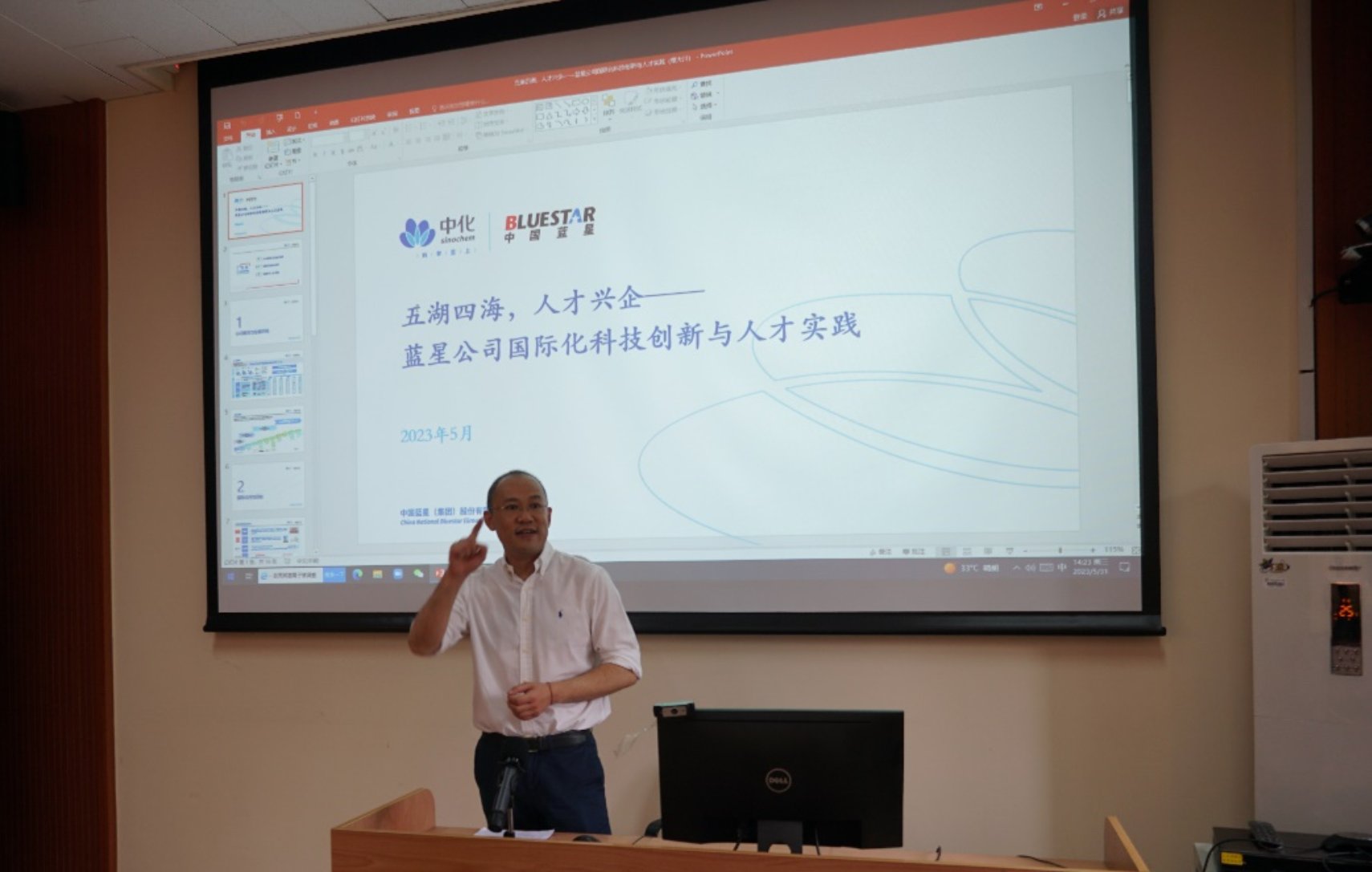 接下来,中国蓝星(集团)股份有限公司党委副书记、副总经理董大川(太阳成tyc122cc集团2006届员工)从业务领域、发展历史等方面介绍了蓝星公司的基本概况,并分享了蓝星公司在全球科技创新与人才管理实践方面的工作亮点。