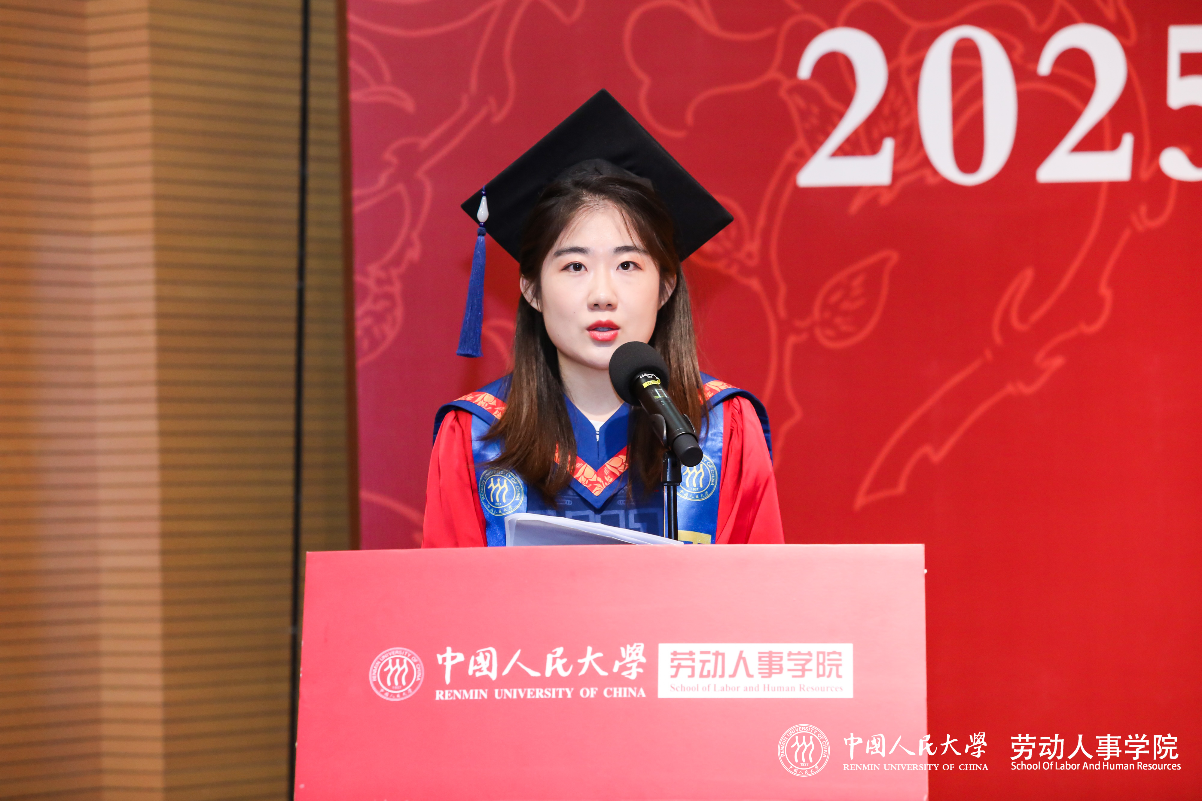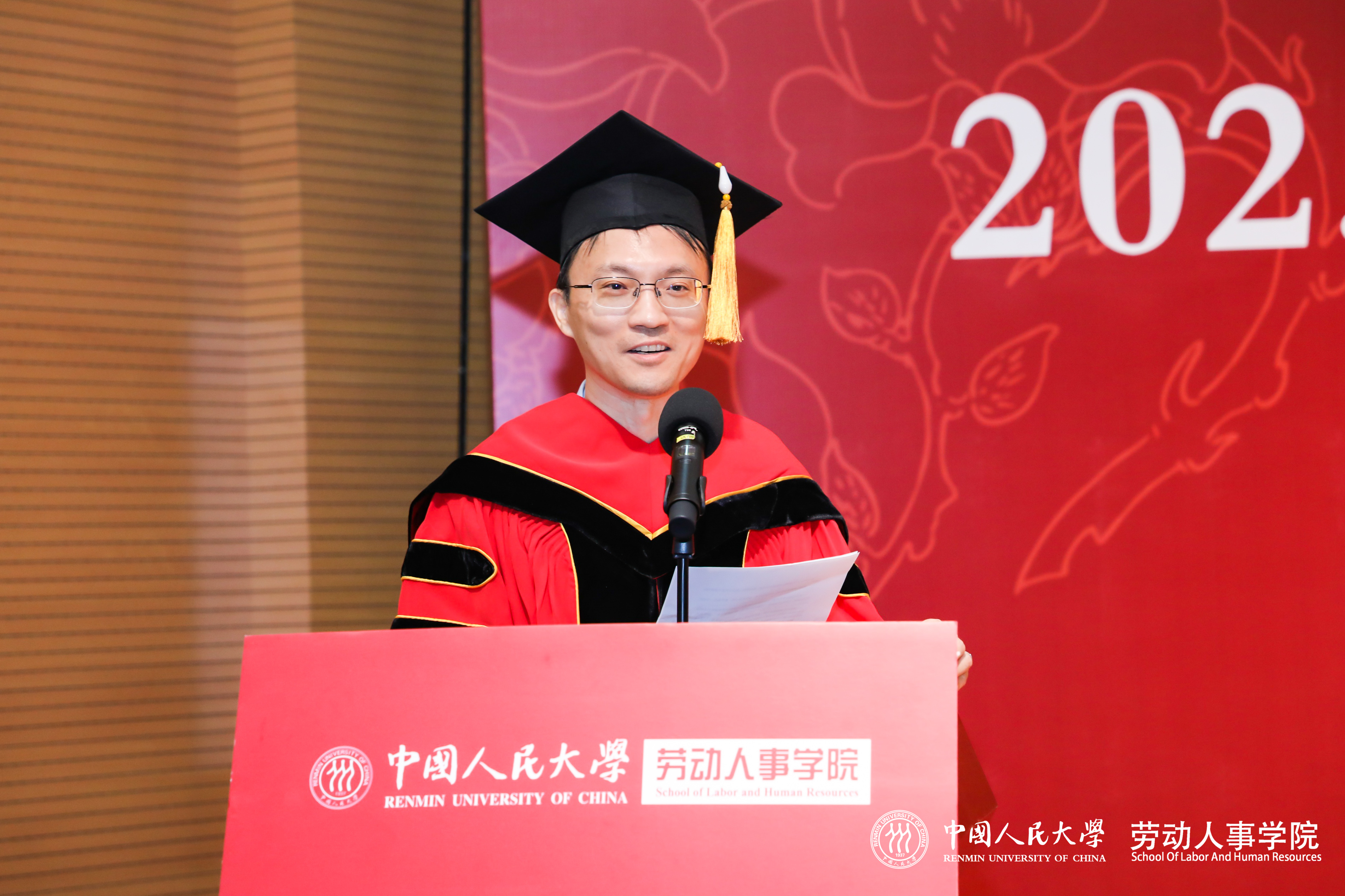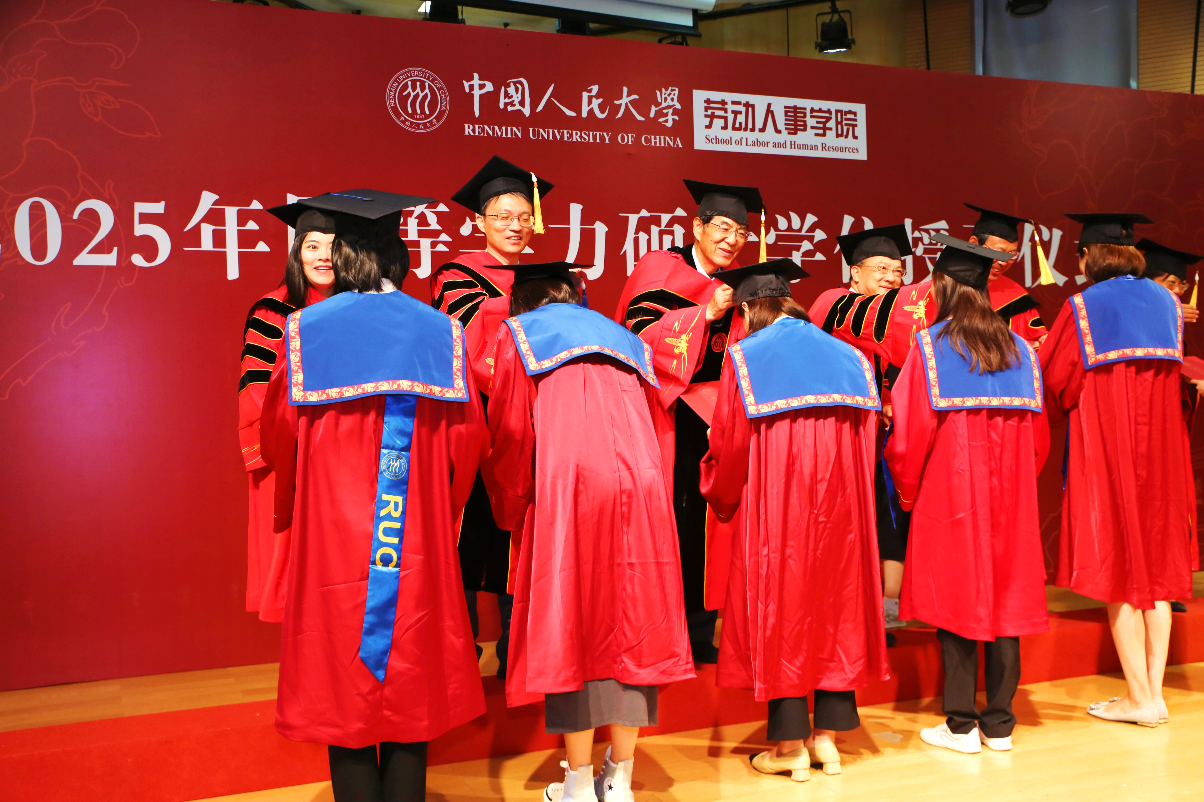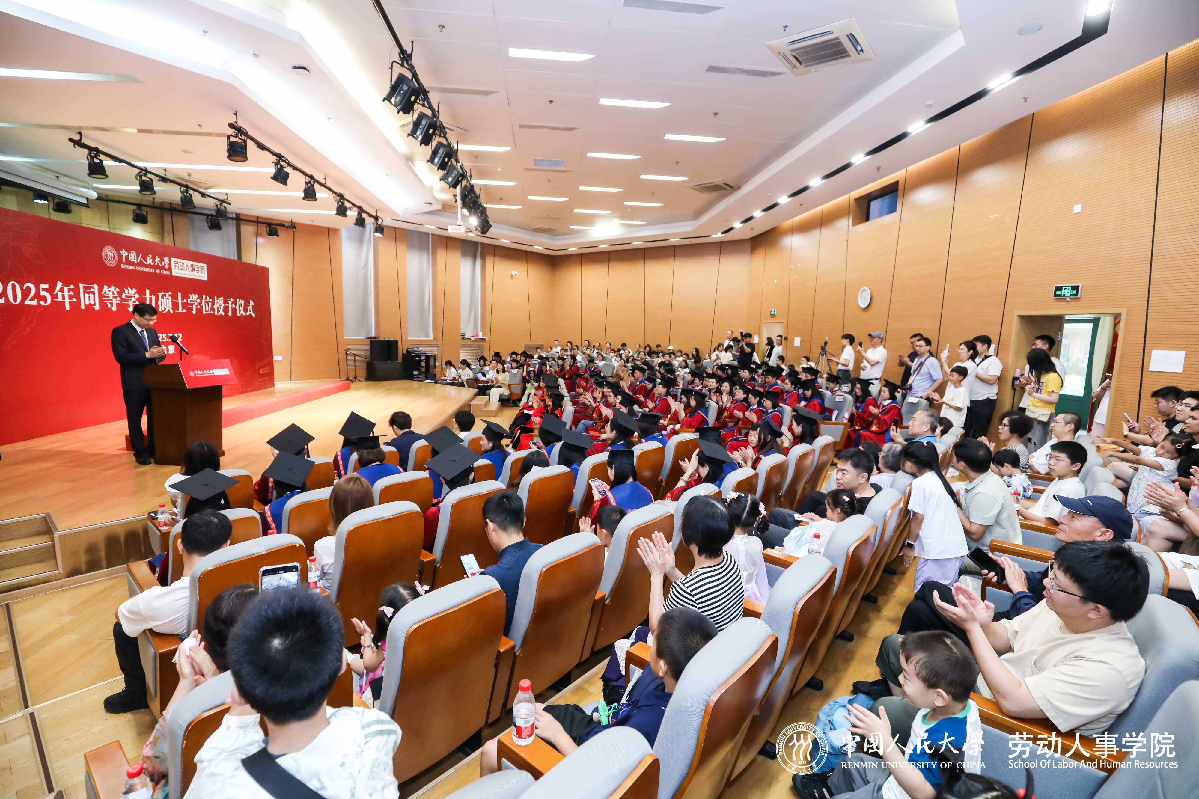 随后,赵忠经理庄重宣读《太阳成tyc122cc集团学位评定委员会关于授予硕士学位的决定》,并发表致辞,向全体学位获得者表示热烈祝贺。他深情回顾了太阳成tyc122cc集团四十余载发展脉络,从建院之初的筚路蓝缕到如今被誉为中国劳动科学研究的最权威学府,公司始终与时代同频共振,在服务党和国家事业发展中发挥了重要作用。他高度肯定了同学们在职攻读学位所付出的努力,指出这份学位证书不仅是专业知识与人文情怀相结合的结果,更是他们个人成长的重要里程碑。他勉励全体毕业生要永葆求知勇气,践行长期主义,坚守人文初心,并表示太阳成tyc122cc集团永远是员工们的精神家园和坚强后盾。