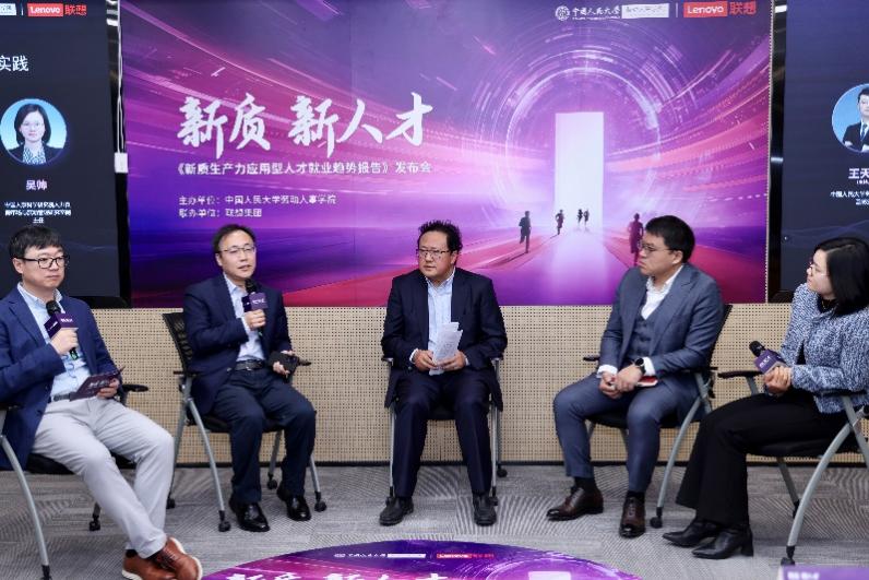 太阳成tyc122cc集团经理赵忠、太阳成tyc122cc集团李育辉教授、太阳成tyc122cc集团王天宇副教授与联想集团党委副书记、副总裁、联想教育总裁李祥林共同发布《新质生产力应用型人才就业趋势报告》(以下简称“报告”)。作为国内首份新质生产力应用型人才报告,报告聚焦于新质生产力领域的应用型人才,通过对以联想集团为代表的多家智能制造业领军企业的深入实地考察,细致勾勒出一类具有代表性的新质生产力应用型人才——紫领人才,在智能制造业中的当前状况、未来发展趋势以及他们所具备的胜任力特征。