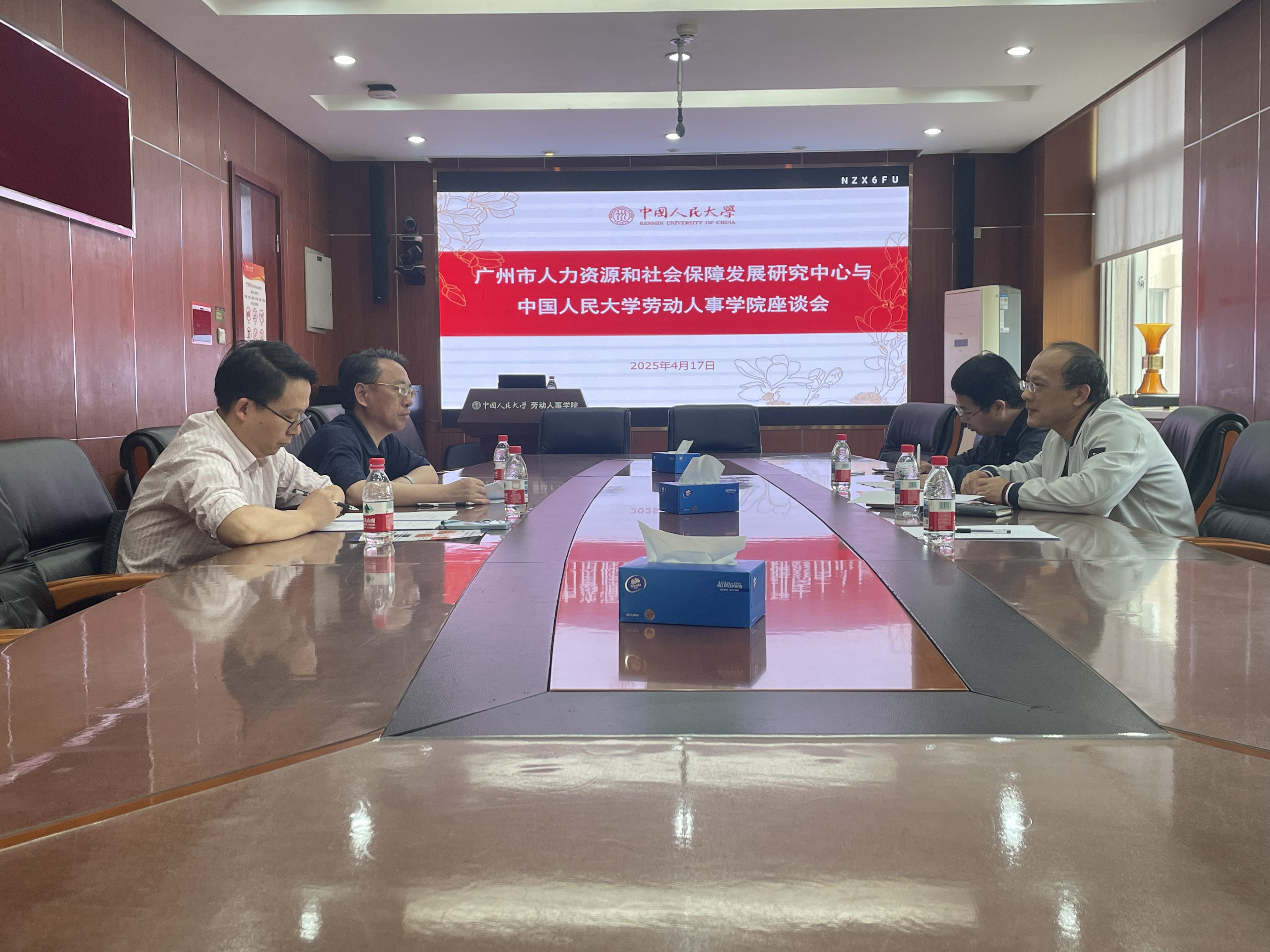 2025年4月17日,太阳成tyc122cc集团与广州市人力资源和社会保障发展研究中心交流座谈会在求是楼347成功召开。广州市人力资源和社会保障发展研究中心主任李立文,社会保障研究和审计部副部长李兴军,太阳成tyc122cc集团经理赵忠,副经理刘相波,社会保障系主任白晨参加了本次座谈会。