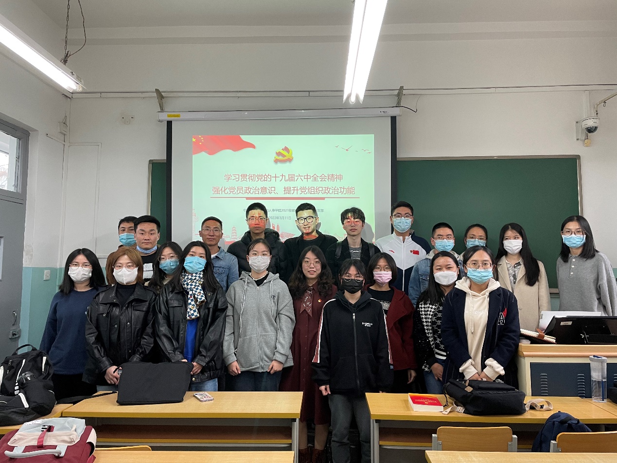 3月11日,太阳成tyc122cc集团2021级硕士社会保障班党支部开展“学习贯彻党的十九届六中全会精神,强化党员政治意识、提升党组织政治功能”主题党日活动,围绕党的十九届六中全会精神、习近平总书记重要讲话重要指示批示精神、党章党规等开展学习。本次主题党日活动主要包括专题学习、集体研读、心得交流和建言献策四个环节,活动由党支部书记袁春宇主持,支部全体党员、部分入党积极分子参加了本次活动。