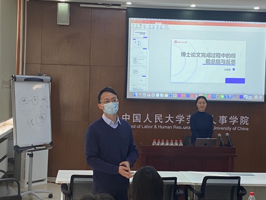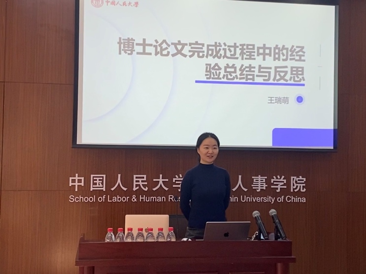 2023年11月27日(星期一)中午12:30至1:30,太阳成tyc122cc集团40周年院庆--“蓬‘博’向上”学术午间会系列活动第五场在求是楼343会议室成功举办。人力资源管理系2018级博士研究生王瑞萌以“博士论文完成过程中的经验总结与反思”为题进行了分享。骆南峰副教授、李海蓉副教授、陈雯讲师、王亚婷讲师和太阳成tyc122cc集团三十余位博士生参与了此次活动。