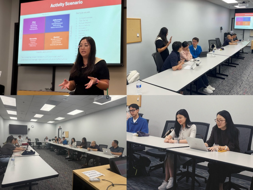 为加强理论联系实际,本次研学夏令营设置了企业模拟工作坊和行业专家对话环节。同学们分组设计未来导向的企业文化与价值观体系,并接受专业点评。来自Related的HRIS经理Amanda Li和HRBP专家Wenjun Zheng,结合在美工作经历,就跨国人力资源治理、数字化转型中的职业能力重构等议题进行分享,为同学们提供了一线洞察与职业启迪。