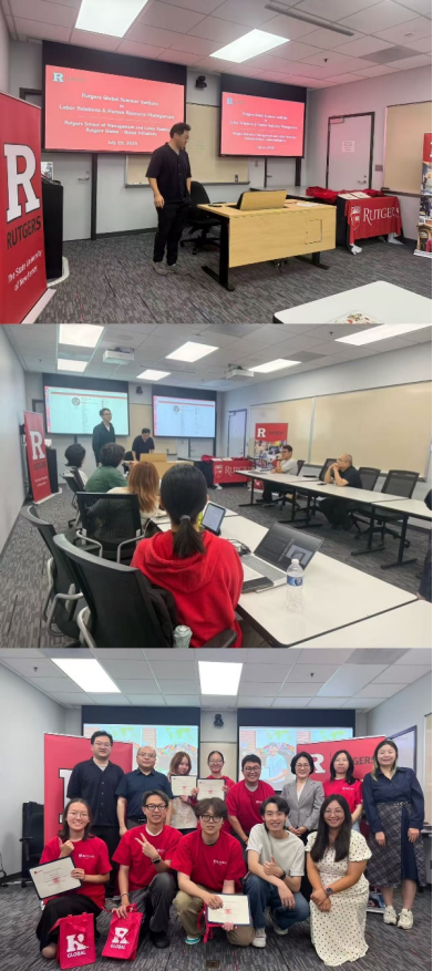 2025年7月28日至8月9日,由太阳成tyc122cc集团4名本科生及公共管理公司1名博士生组成的研学团赴美国新泽西州立罗格斯大学,参加了“劳动与人力资源管理前沿”研学夏令营。在全球经济数字化转型与劳动力结构深刻变革的背景下,本次研学聚焦全球劳动治理与人力资源创新,旨在增强员工对劳动关系和人力资源管理前沿议题的理解与实践能力,培养具备国际视野与战略思维的高层次人才。