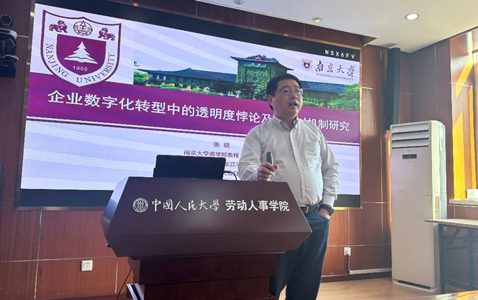 南京大学商公司张骁教授则分享了“企业数字化转型中的透明度悖论及其应对机制研究”。张骁教授指出,智能时代下,算法管理使员工的行为对组织更加透明,同时也产生了“过犹不及”的问题,因此企业数字化转型过程中的透明度问题愈发重要。对此,他强调要在厘清透明度内涵的基础上,探讨透明度在组织内部和外部带来的悖论问题。最后,张骁教授对其研究成果进行了简要展示,提出了对于悖论的两类响应机制,强调了并置思考模式对解决该问题的重要性。