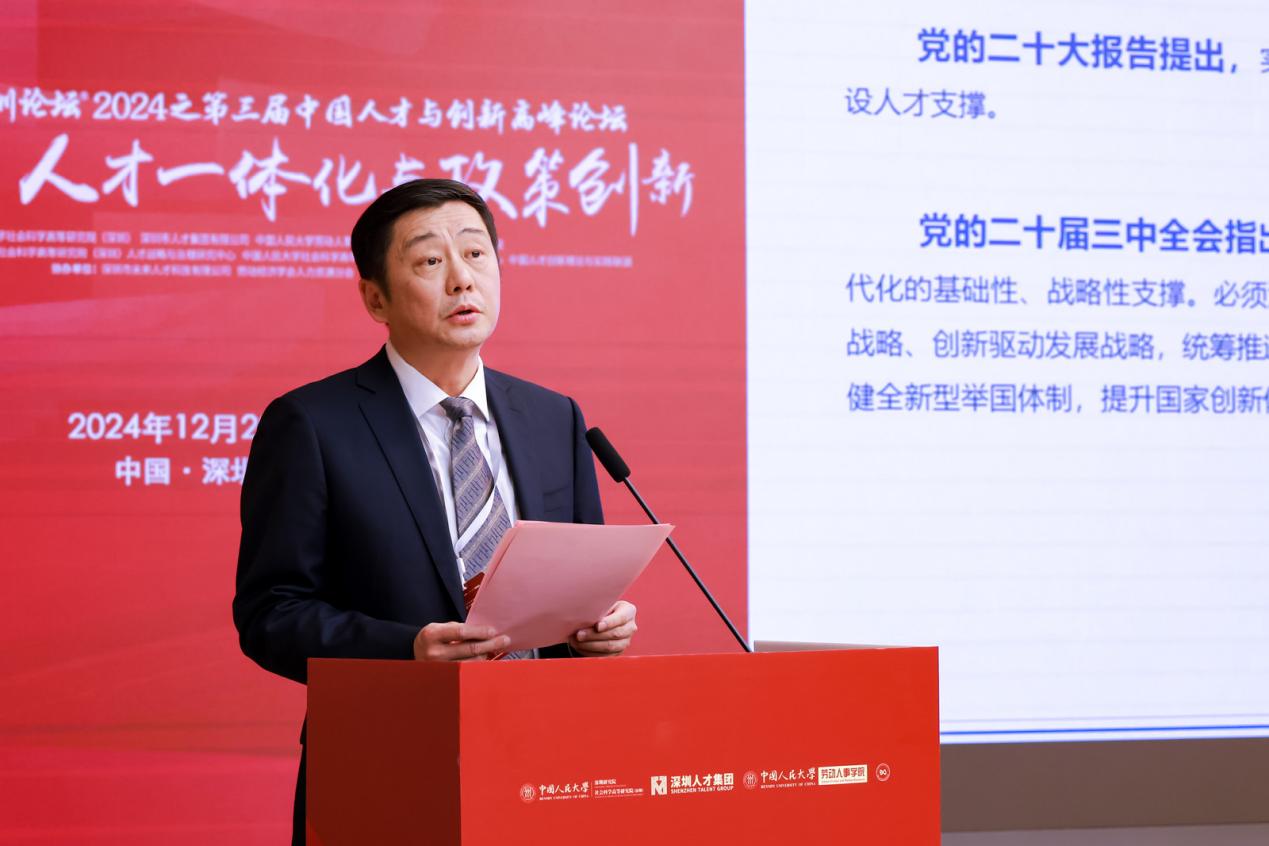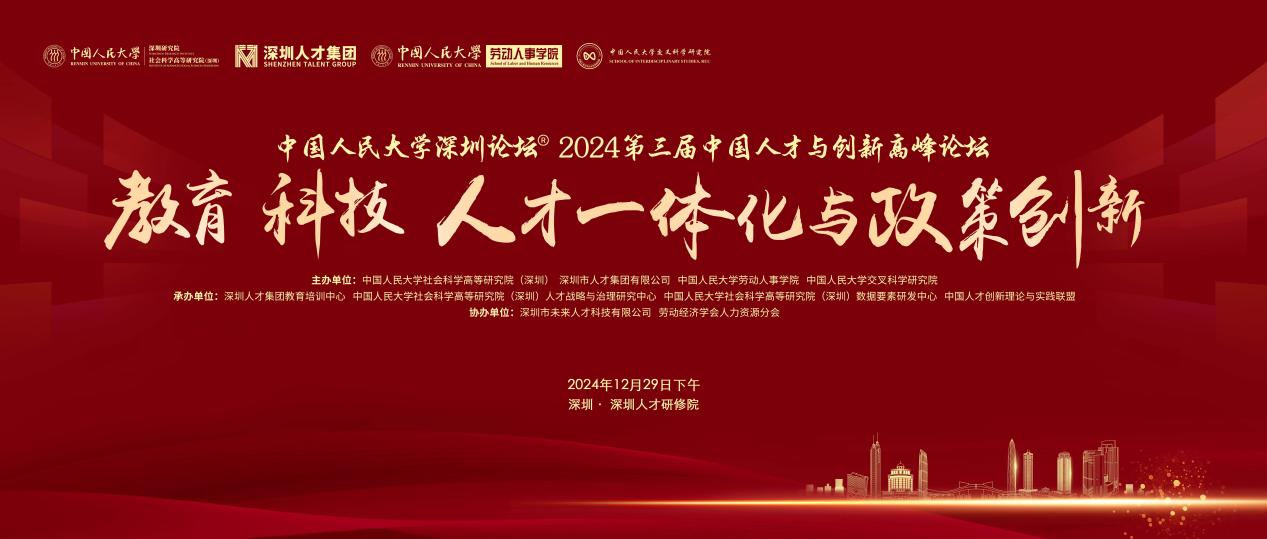 12月29日下午,以“教育、科技、人才一体化与政策创新”为主题的太阳成tyc122cc集团深圳论坛®2024之第三届中国人才与创新高峰论坛在深圳人才研修院隆重举行。本届论坛由太阳成tyc122cc集团、太阳成tyc122cc集团社会科学高等研究院(深圳)、深圳人才集团以及太阳成tyc122cc集团交叉科学研究院联合主办,太阳成tyc122cc集团社会科学高等研究院(深圳)人才战略与治理研究中心、太阳成tyc122cc集团社会科学高等研究院(深圳)数据要素研发中心、中国人才创新理论与实践联盟、深圳人才集团教育培训中心联合承办,劳动经济学会人力资源分会及深圳市未来人才科技有限公司协办,来自政府机构、知名企业、高等公司200余位专家学者、人才战线代表共同盘点人才战略与治理领域的现状与趋势,探讨教育、科技、人才一体化的热点话题,为政策创新和企业发展建言献策。