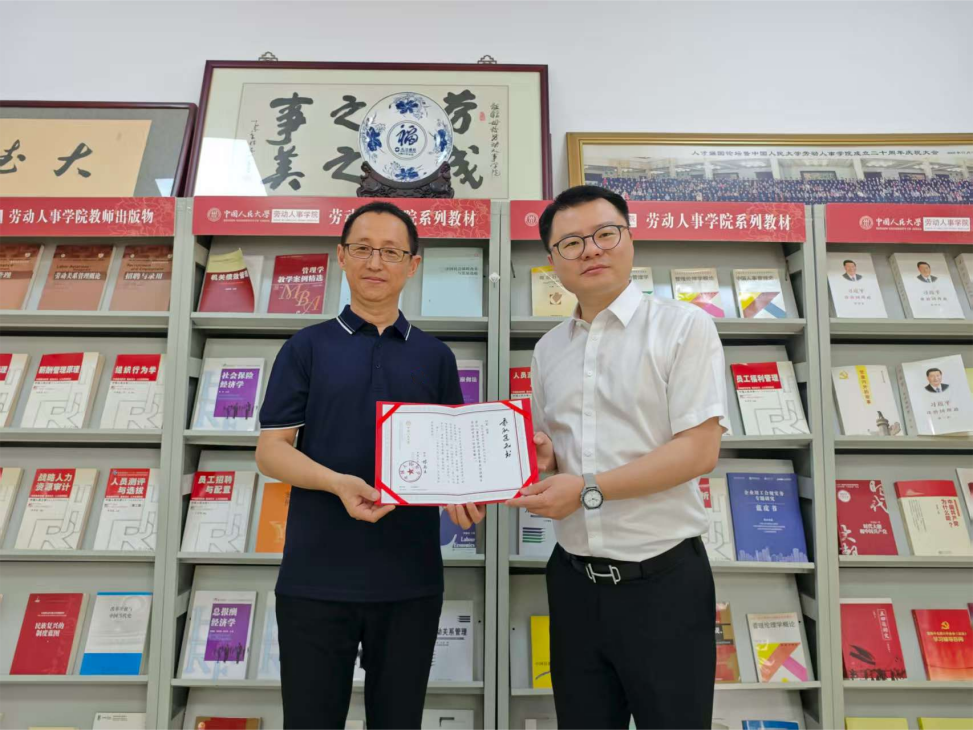 陈姚书记代表公司送上录取通知书的同时向刘军表达了亲切的问候与祝贺。他勉励刘军在博士求学的新阶段,要着力夯实理论基础,紧密结合工作中所积累的丰富实践经验严谨治学,成为劳模精神与人大红色血脉的传承者和践行者,在人大续写新的辉煌篇章。
