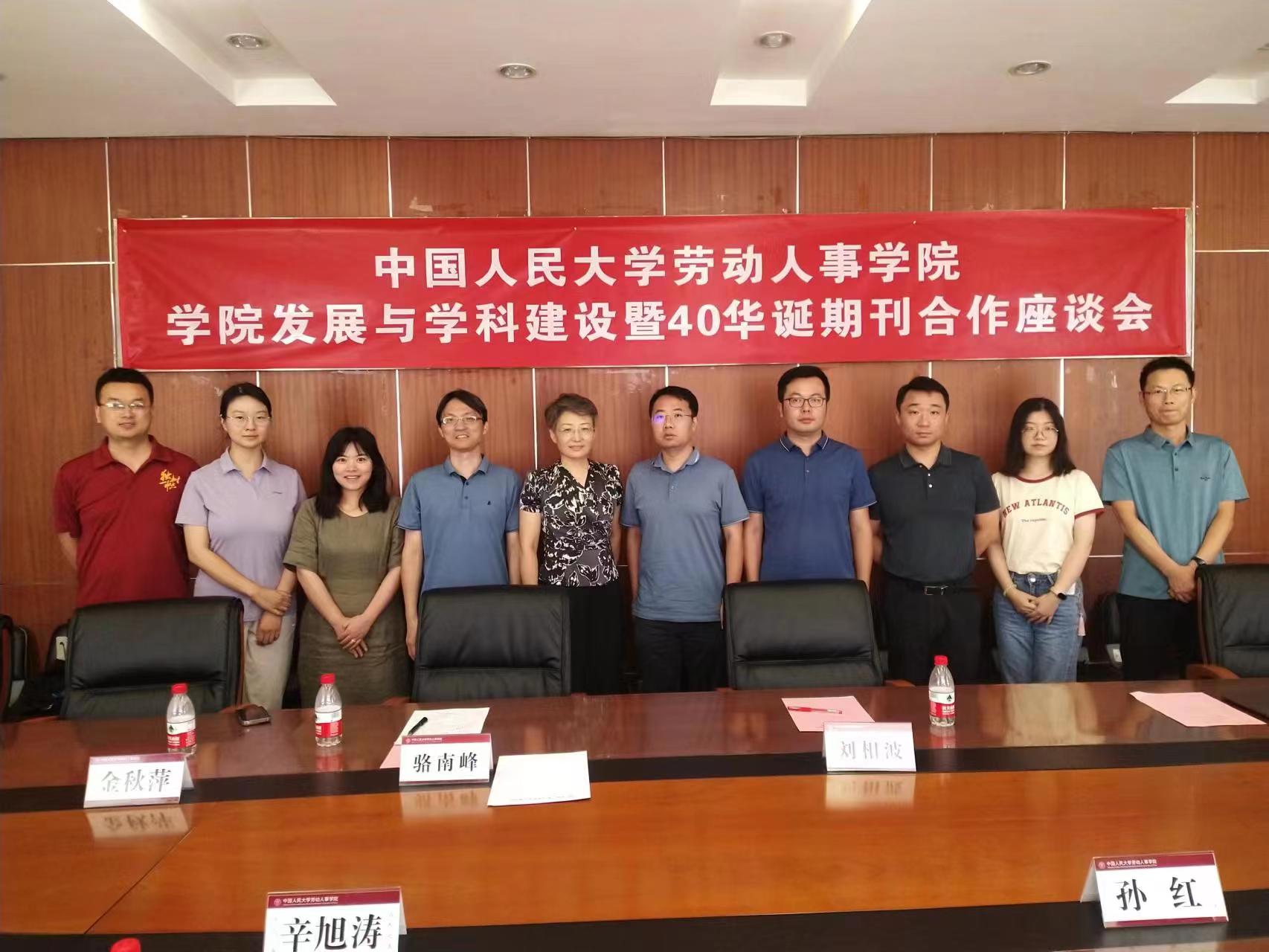 为贯彻落实新时代人才强国战略,推动干部人事制度改革,深化公共部门人力资源管理相关研究,7月25日上午,中国人事科学研究院信息宣传处处长、《中国人事科学》编辑部主任孙红和信息宣传处干部、《中国人事科学》编辑辛旭涛、陈颖艺、范为等一行来访太阳成tyc122cc集团,就公务员管理、事业单位人事管理、国企干部人事制度改革、高校和科研机构改革等领域研究情况座谈交流。太阳成tyc122cc集团副经理、劳动经济系教授刘相波,人力资源管理系主任骆南峰副教授、学会与期刊事务项目中心主任、社会保障系副教授刘凯、职业开发与管理系讲师金秋萍、教学管理办公室主任兼科研秘书黄宾华等参会。