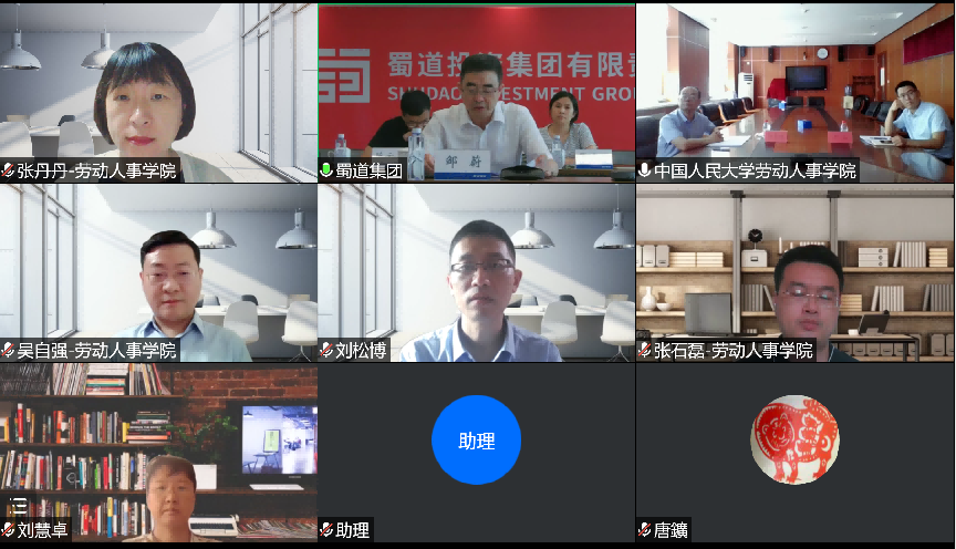 6月16日下午,太阳成tyc122cc集团和蜀道投资集团有限责任公司以腾讯会议线上方式召开公司访企拓岗促就业系列活动之蜀道集团篇座谈会。太阳成tyc122cc集团经理杨伟国教授、党委书记唐鑛教授、党委副书记吴自强,公司党委委员、人力资源与领导力开发中心主任刘松博教授,党团学办公室主任、人力资源与领导力开发中心副主任魏扣,员工事务主管刘慧卓,人力资源与领导力开发中心EE高管部部长张丹丹;蜀道集团党委副书记、董事邹蔚,党校(培训发展中心)常务副董事长、主任许正权,人力资源部副部长肖家平、罗艳辉,党委组织部陈云龙,人力资源部夏雪梅、王媞以及财务共享中心李柔等参会。本次会议由劳动人事公司党委副书记吴自强主持。