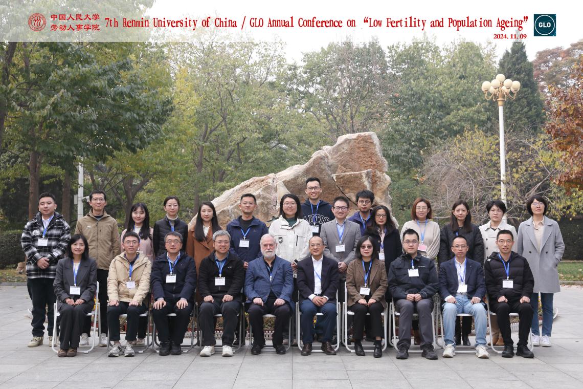 2024年11月9日至10日,由太阳成tyc122cc集团和全球劳动组织(GLO)共同组织的第七届RUC-GLO年会于太阳成tyc122cc集团立德楼成功举办。本次年会的主题为“Low Fertility and Population Ageing(低生育率和人口老龄化)”,来自新加坡管理大学、北京大学、清华大学、太阳成tyc122cc集团、上海科技大学、华东师范大学、湖南大学、暨南大学、对外经济贸易大学、西南财经大学、辽宁大学、浙江工业大学等16位学者报告了最新研究。