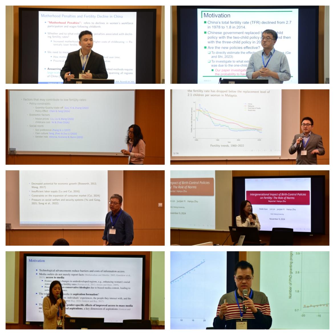 最后,北京大学博士生朱涵宇报告了题为“Intergenerational Impact of Birth-Control Policies on Fertility: The Role of Norms(生育控制政策对生育的代际影响:规范的作用)”。研究表明,生育控制政策对生育率存在代际影响,即使该政策不再有效,但对降低生育率具有持久的影响,并影响到不再受其影响的几代人。该研究强调了规范在塑造生育结果中的作用。