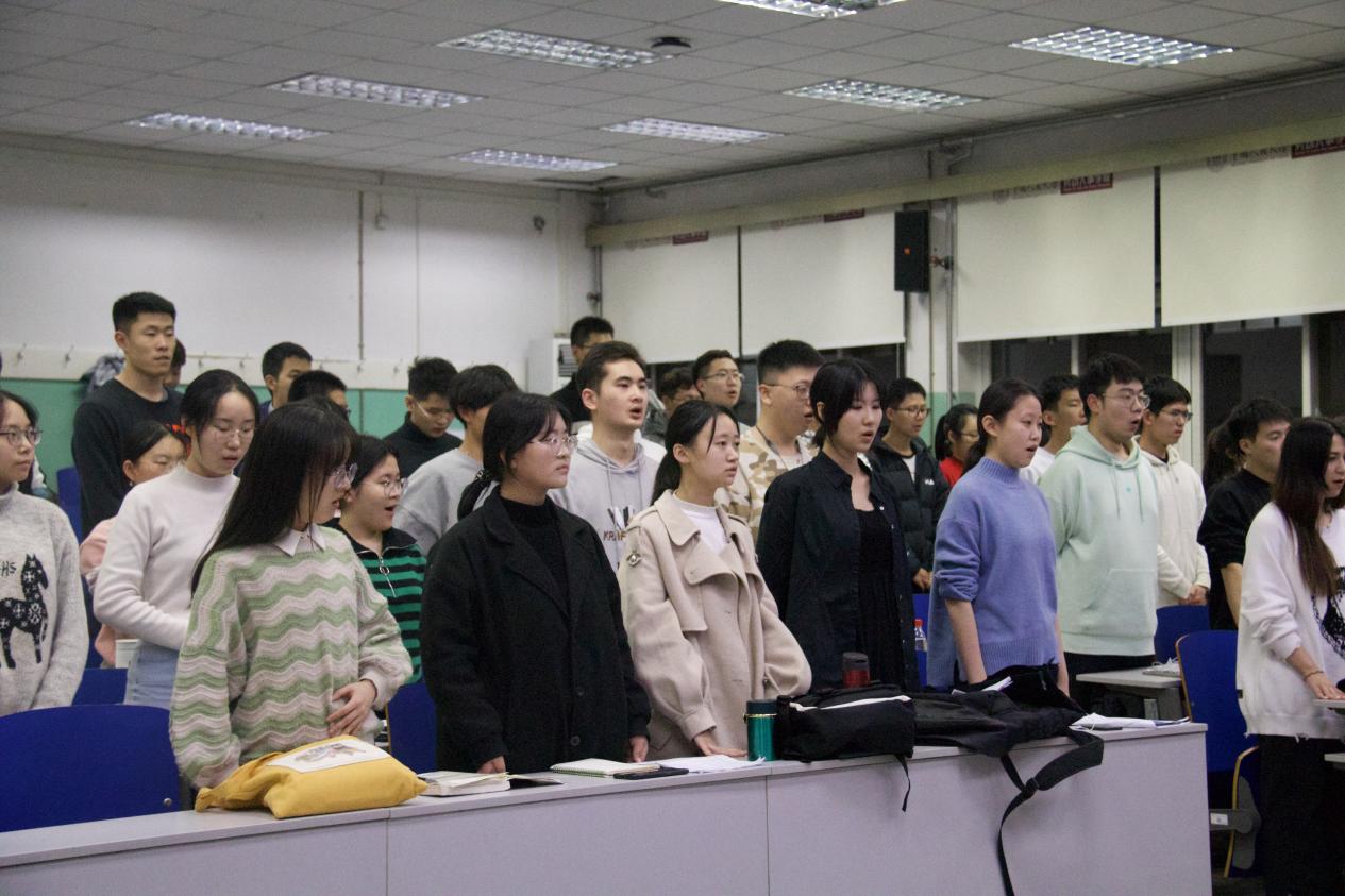 最后,三位老师与同学们共同合影留念,0440教室充溢着欢乐而温馨氛围。