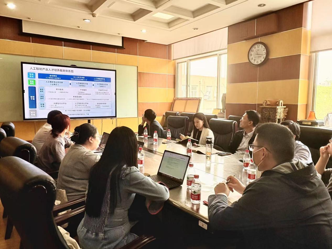 会议伊始,丁进经理详细阐述了百度实训室在培养契合产业需求的复合型AI人才方面的先进理念与实践经验,深入解读百度智能大模型如何融入人才培养体系以及党团建设服务,并分享了百度与其他企业以及理工类高校的成功合作案例,为本次合作洽谈提供了丰富的借鉴与思路。在交流过程中,公司各位老师分别提出了自己的技术疑惑、合作想法与共创愿景,现场气氛热烈。