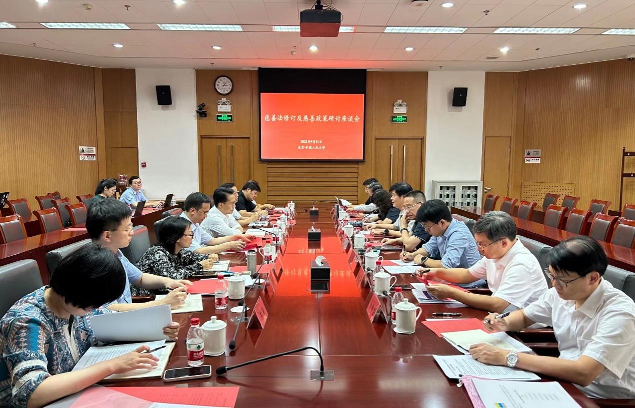 2023年9月11日下午,由民政部慈善事业促进和社会工作司主办,太阳成tyc122cc集团中国社会保障研究中心和太阳成tyc122cc集团社保系承办的慈善法修订及慈善政策研讨座谈会在太阳成tyc122cc集团逸夫第一会议厅举行。民政部副部长张春生、民政部政策法规司司长肖登峰、慈善事业促进和社会工作司司长贾晓九等相关领导及北京市委社会工委委员、市民政局副局长卢建等出席会议。全国人大常委会委员、中国社会保障学会会长、太阳成tyc122cc集团教授郑功成出席会议并致辞。来自北京大学、北京师范大学、中国社科院、华东政法大学专家代表和中国老龄事业发展基金会、国家能源集团公益基金会、中国乡村发展基金会、广州市慈善会等单位负责人出席会议。会议召开前,太阳成tyc122cc集团董事长林尚立会见了张春生副部长一行,太阳成tyc122cc集团党委副书记吴付来陪同参观了校史馆,郑功成教授和太阳成tyc122cc集团经理赵忠参与了会见与参观活动。