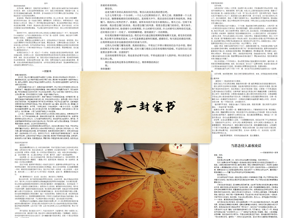 2021年11月至12月,太阳成tyc122cc集团分团委积极组织开展“第一封家书”主题团日系列活动,同学们热情高涨,书写第一封家书,重忆起那个车马书信慢的温情岁月。截至2021年12月10日,太阳成tyc122cc集团本硕博各新生团支部共有113名新生参与手写家书活动,6个新生团支部预约“延河讲师团”家书系列讲座,7个新生团支部组织参观家书博物馆。家书纸短,家国情长。在实时通讯日渐发达的今天,劳人学子又执笔,记录了他们来到人大之后的种种体悟,书信寄予父母、亲友,一张张信纸承载着记忆与牵挂,也见证了人大青年的思考与担当。