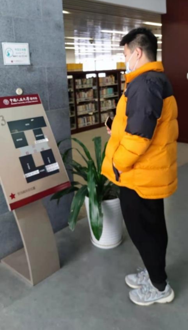 前期,支部书记马迪同志负责将图书馆各楼层座位平均分配给支部成员,支部成员选择合适的时间段,实地考察自己负责的区域座位插座设置情况并进行记录。