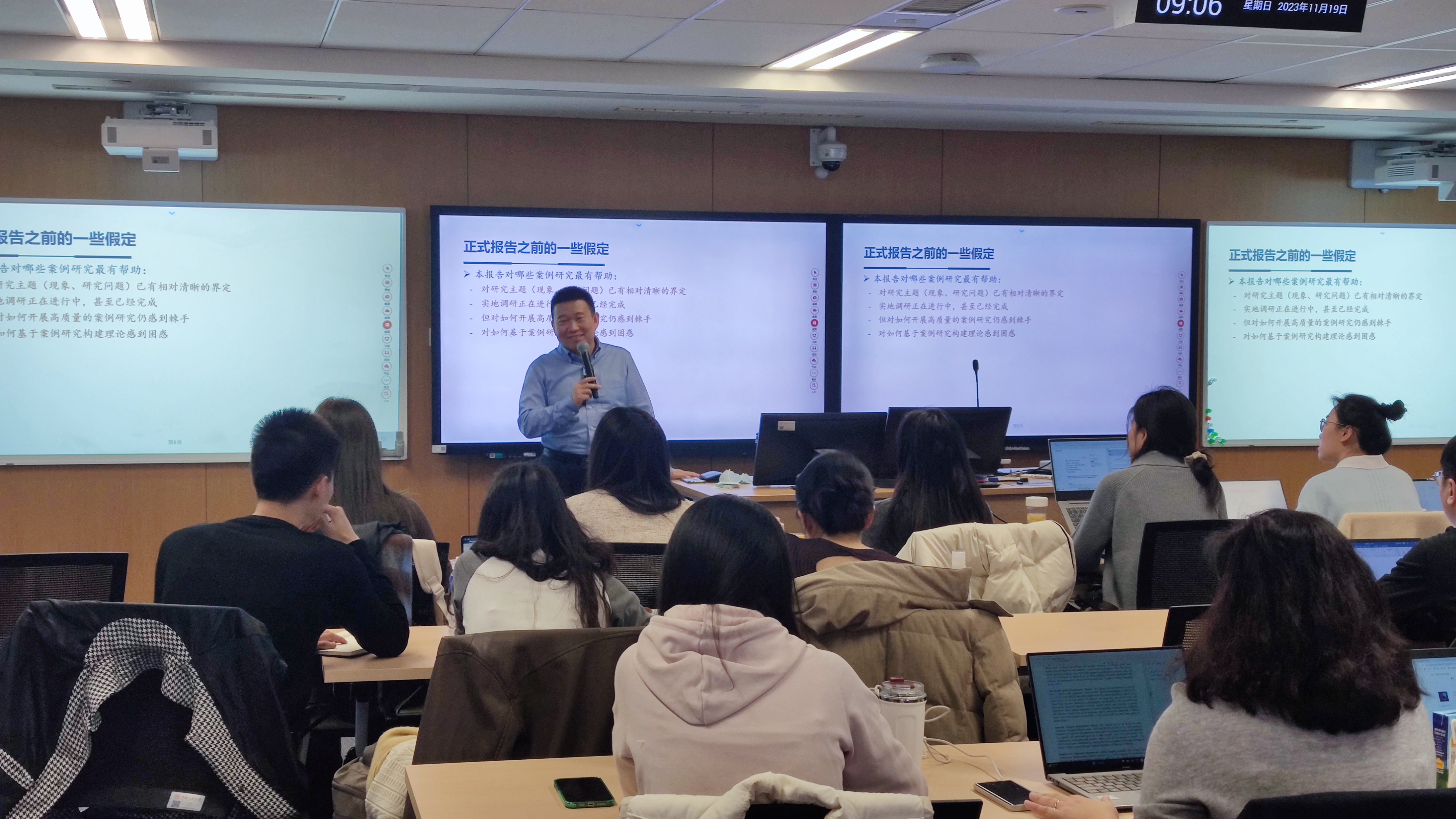 在第二场讲座中,李亮教授简要介绍了案例研究的基本逻辑和案例选择。在这一模块,李亮教授从科学研究的过程出发,指出案例研究的核心逻辑在于通过构建新的理论,对现象进行更好的解释。接着李亮教授讲解了如何进行案例选择。案例选择的原则是理论抽样(而非随机抽样),即应根据是否适合回答研究问题并发展理论来选择案例。对于单案例研究来说,一般选取极端、独一无二的案例,启示性案例,或纵向案例;而多案例研究则可以基于复制逻辑,通过逐项复制和差别复制的方式选择多个案例。