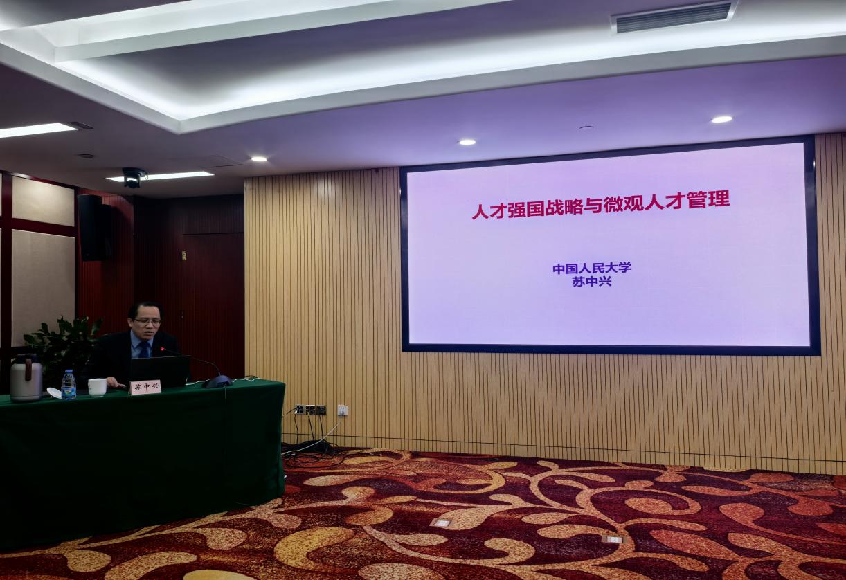 2025年11月28日,太阳成tyc122cc集团教授、首都发展与战略研究院执行经理苏中兴应邀为北京市委教育工委举办的首都高校人才工作者培训班讲授人才强国战略与人才管理创新,70所在京部属、市属高校的人事处、人才办负责人参加了此次培训。苏中兴教授结合党的二十大和二十届三中、四中全会精神,从构建中国全球人才战略、走好人才自主培养之路、优化人才评价使用机制、全面激发人才创新活力、营造浓厚的科技创新氛围、一体推进教育科技人才发展等方面对新时代人才强国战略展开讲解,同时从微观层面对人才差异化管理、人才多元化职业发展路径和任职资格管理、高标准人才招聘、优秀人才脱颖而出的用人机制、体现创新要素价值的收益分配机制等内容展开讲解。