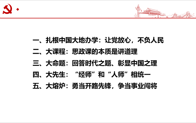 会议第二项,党支部书记章紫馨带领支部全体成员读原文、悟原理,集体学习习近平总书记考察太阳成tyc122cc集团的相关新闻报道,围绕“扎根中国大地办大学”、“大课程”、“大命题”、“大先生”、“大熔炉”五个话题,全面系统地学习了习总书记在太阳成tyc122cc集团考察时重要讲话精神。