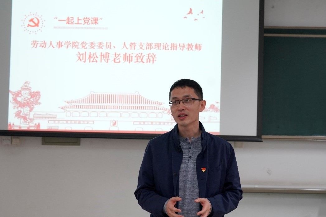 图2劳动人事公司党委委员、人管支部理论指导教师刘松博进行致辞