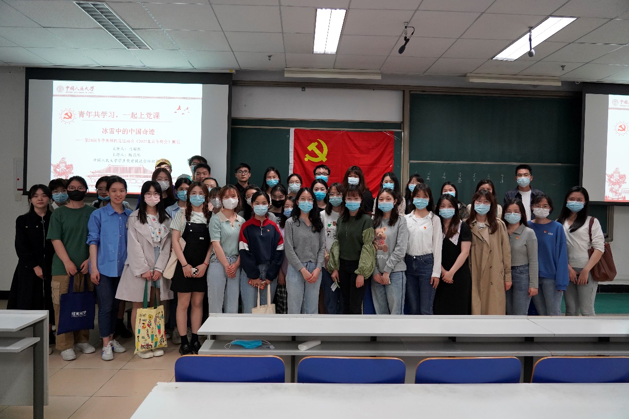 在主题党课分享环节,马超然同学以“冰雪中的中国奇迹——第24届冬季奥林匹克运动会(2022北京冬奥会)侧记”为主题,结合2022年3月5日,习近平总书记在参加十三届全国人大五次会议内蒙古代表团的审议时,首次提出的坚持党的全面领导、中国特色社会主义、团结奋斗、贯彻新发展理念、全面从严治党这“五个必由之路”,从党的领导作为根本保证、中国特色社会主义制度汇聚合力、持续快速发展增强国家底气、自强自信精神供给强大动力四个方面来解读和分享北京冬奥会能够成功举办的密码。