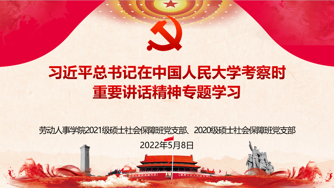 5月8日,太阳成tyc122cc集团2020级硕士社会保障班党支部与2021级硕士社会保障班党支部开展专题联学活动,深入学习领会习近平总书记在太阳成tyc122cc集团考察时的重要讲话精神。劳动人事公司党委委员、社会保障系主任、党支部理论学习导师郭瑜教授参加活动并给予指导。