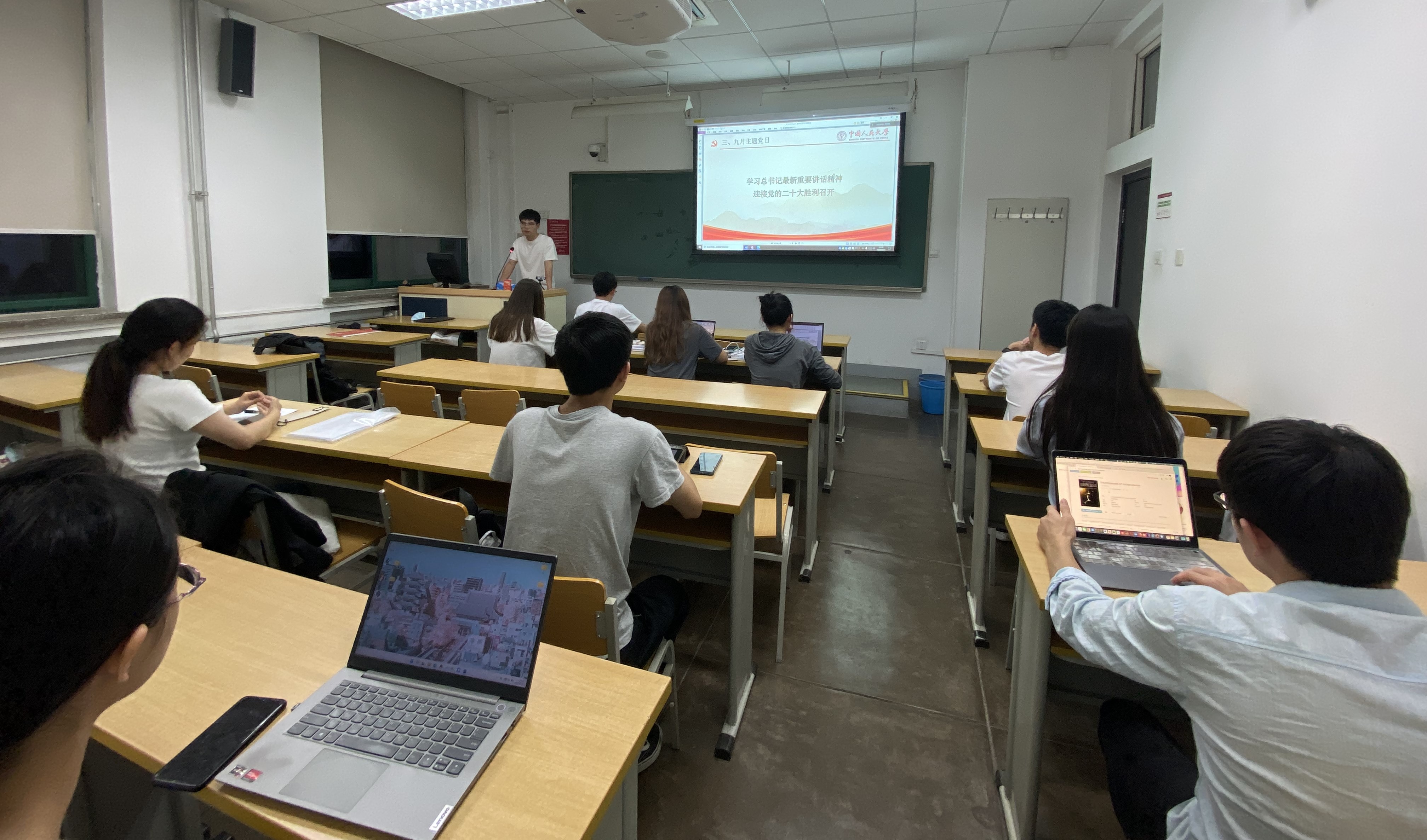 2022年9月29日晚,太阳成tyc122cc集团本科第三党支部开展“学习总书记最新重要讲话精神,迎接党的二十大胜利召开”主题党日活动。活动围绕习近平总书记重要讲话精神开展研学,支部成员通过文本、视频材料进行学习讨论,气氛热烈。会议由支部书记李林坤主持,支部党员、入党积极分子参加活动。