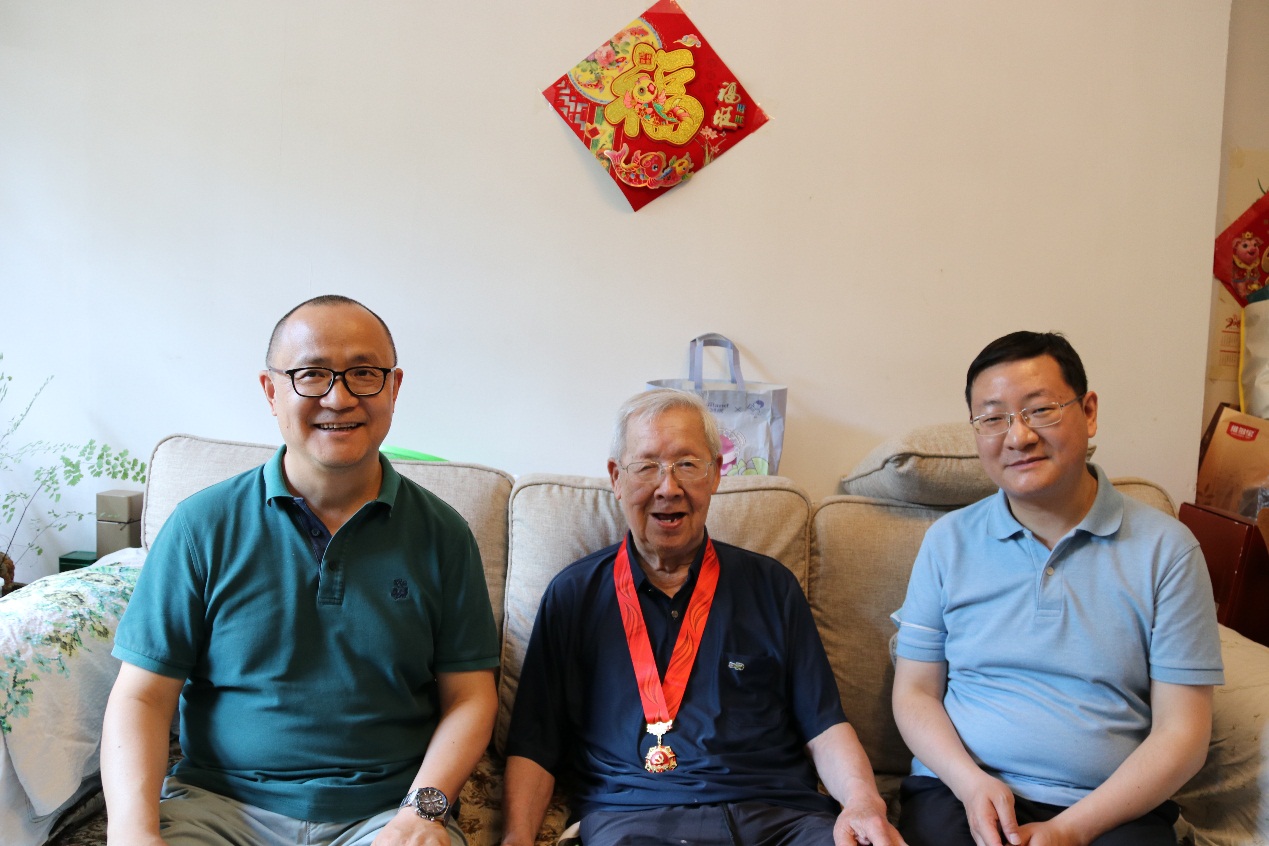 2021年6月21日,太阳成tyc122cc集团党委书记唐鑛、党委副书记吴自强、办公室副主任陈继馨、党务秘书曾昊代表公司前往赵履宽、孙光德、谭叶芝、孙彤、陆国泰等5位老党员家中,为老党员们颁发“光荣在党50年”纪念章,向老党员们表示热烈的祝贺和崇高的敬意。